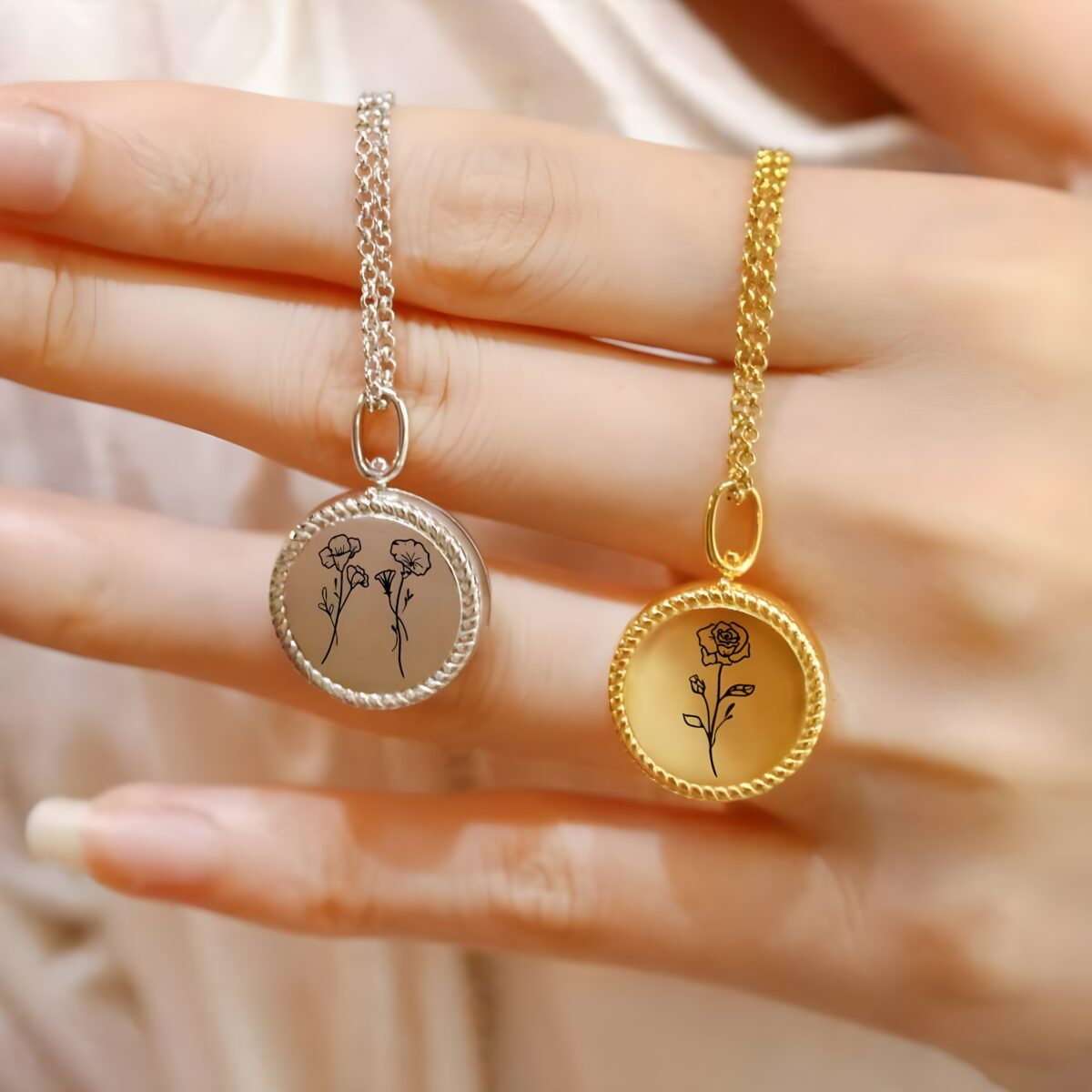 This birth flower photo locket necklace is more than jewelry; it is a personal story, a bloom of memories captured in a delicate pendant. The ability to carry four precious photos and meaningful text makes it a lasting treasure for those you hold dear. Crafted the Eolante Way, it embodies warmth, elegance, and heartfelt connection.