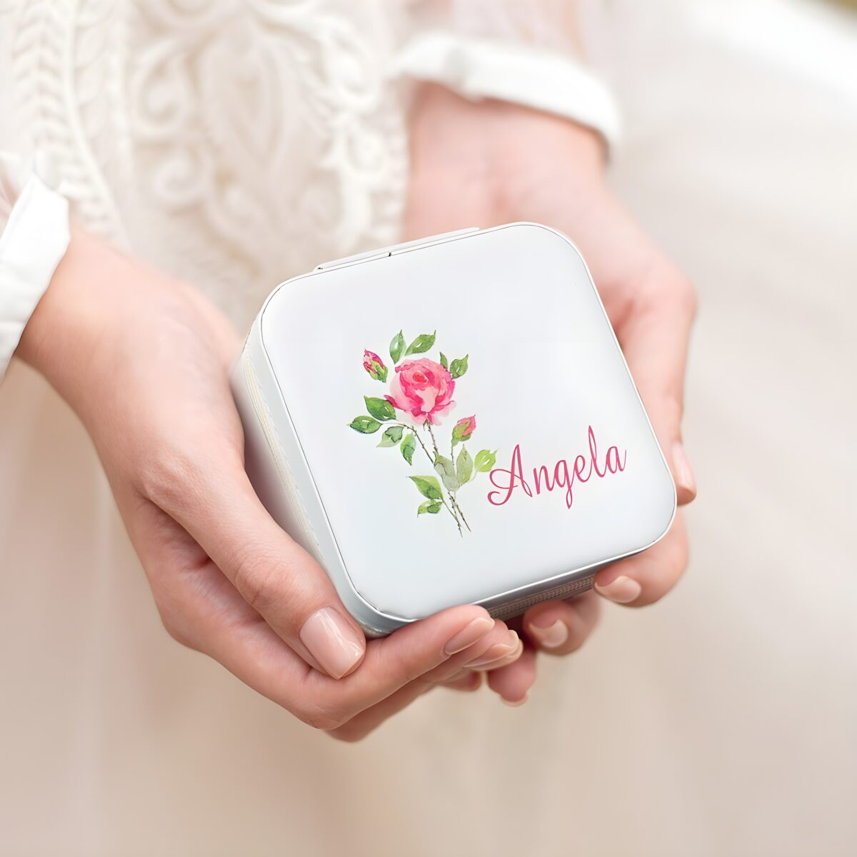 This elegant jewelry travel case is designed for the woman who carries memories and meaning wherever she goes. Adorned with a birth flower and personalized with her name, it celebrates her unique story and the special moments shared with loved ones. Whether for a bridesmaid, mother, or a dear friend, this compact case holds more than jewelry—it holds heartfelt connections.