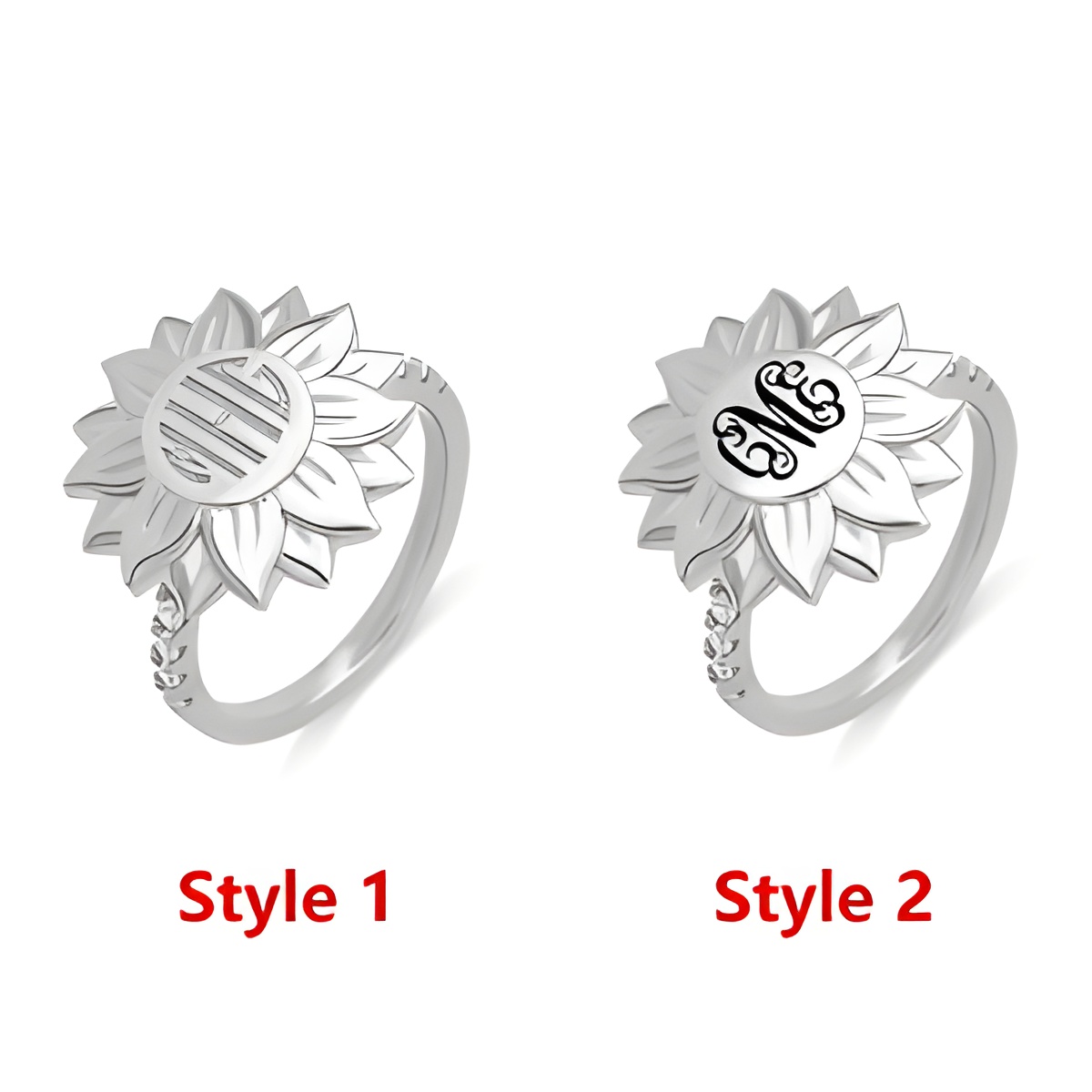 This exquisite sunflower ring is designed for those who find beauty in both nature and meaningful personalization. Crafted to embody warmth and individuality, it carries a monogram engraving that tells a unique story—making it a treasured symbol of love, friendship, or self-expression.