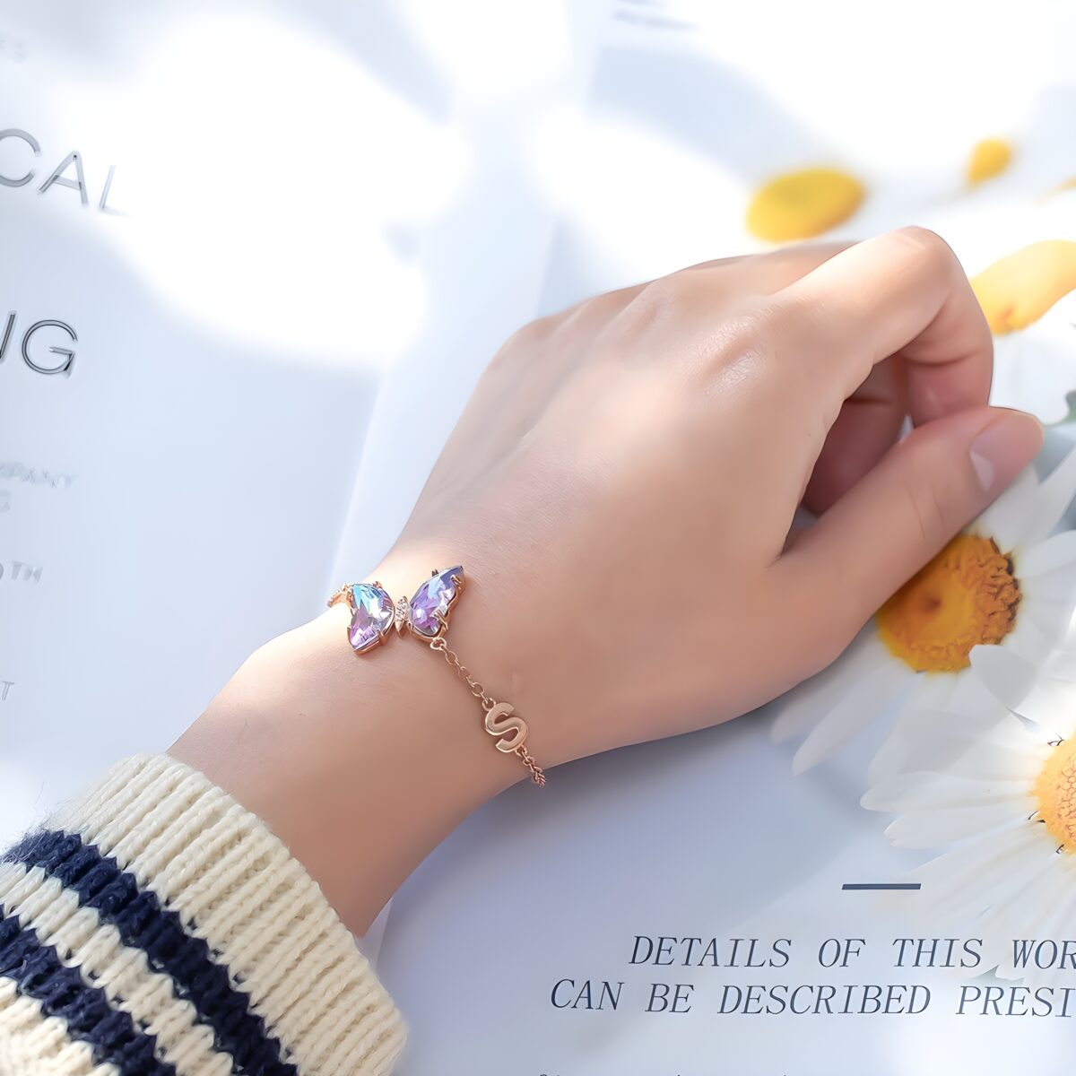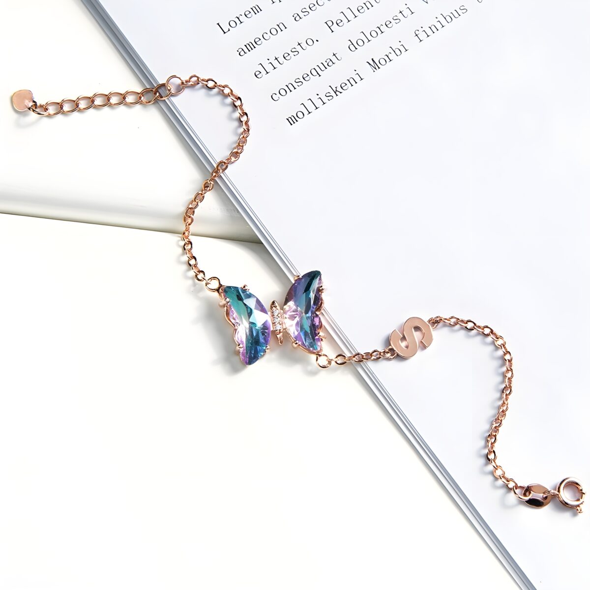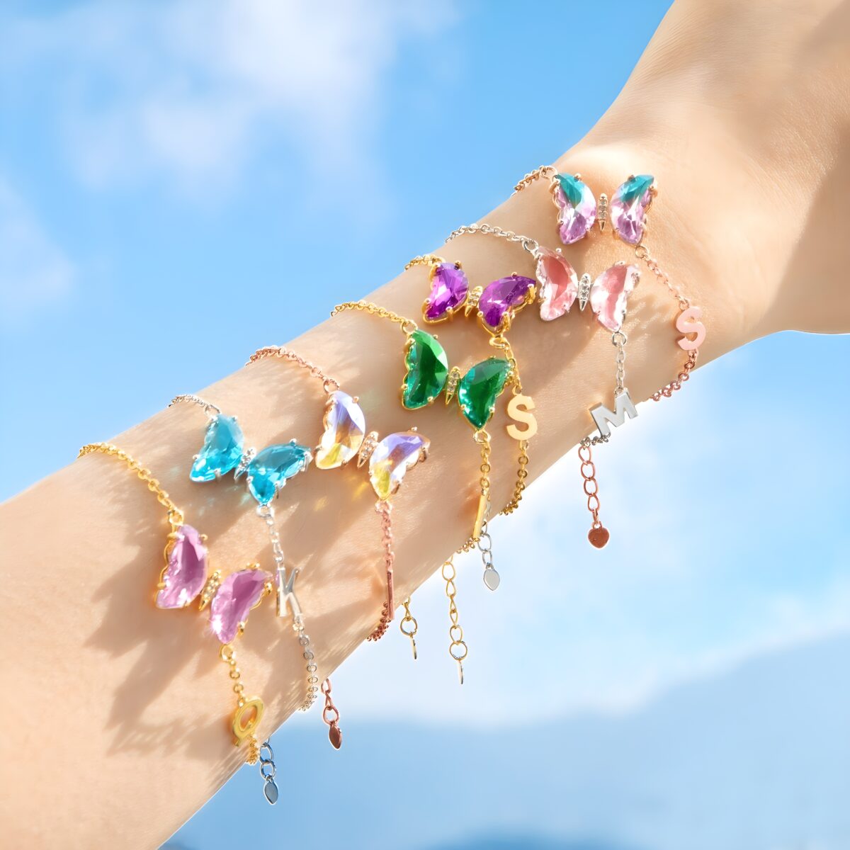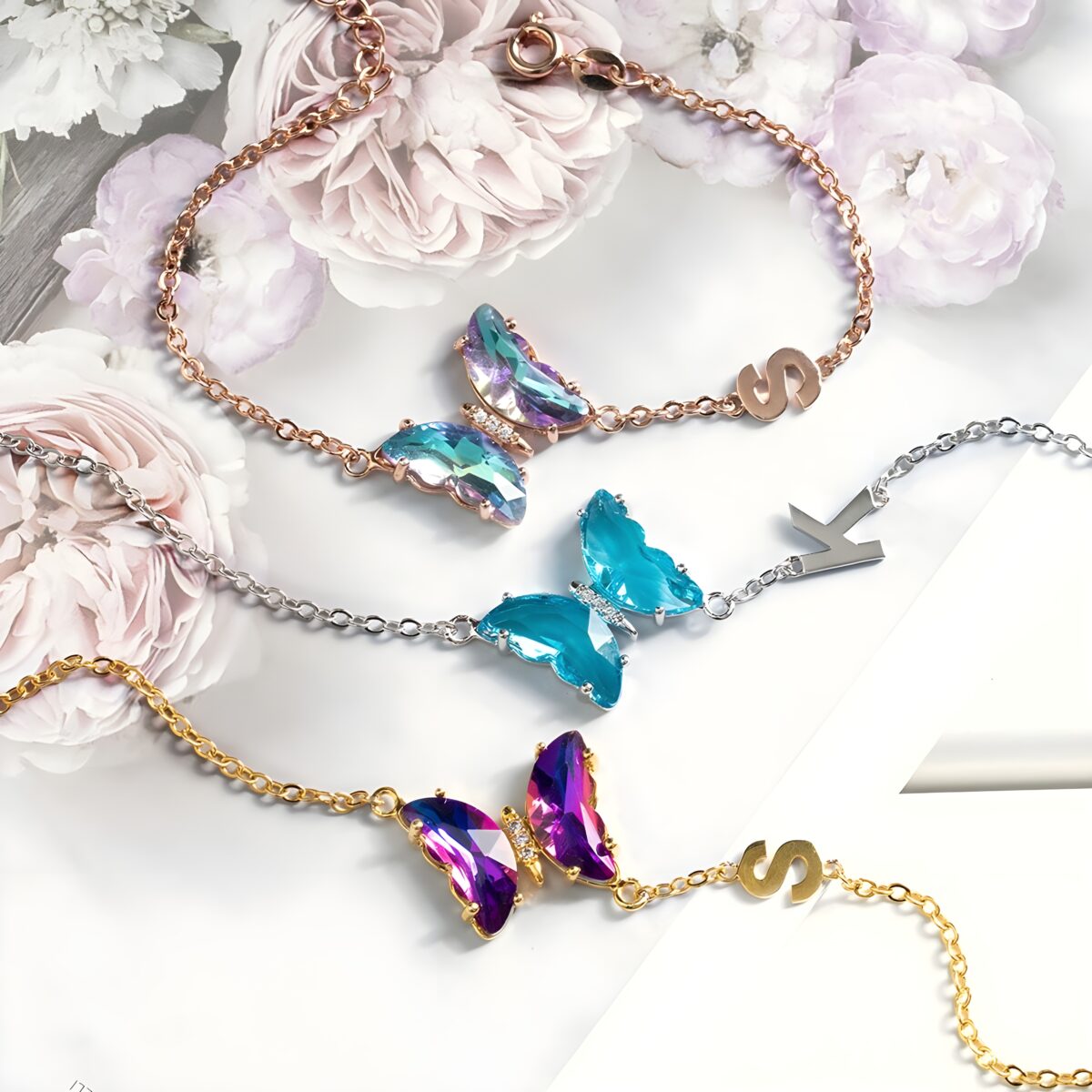 Embrace Transformation – Crystal Butterfly Bracelet with Initials – For Her Special Moments