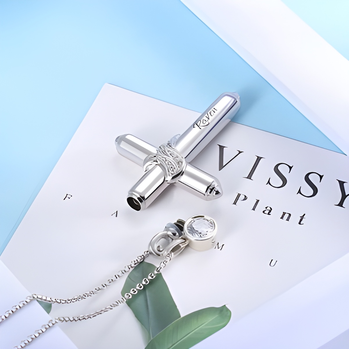 Carry Their Memory Close – Engraved Silver Cross Keepsake Urn Necklace – For Cherished Remembrance