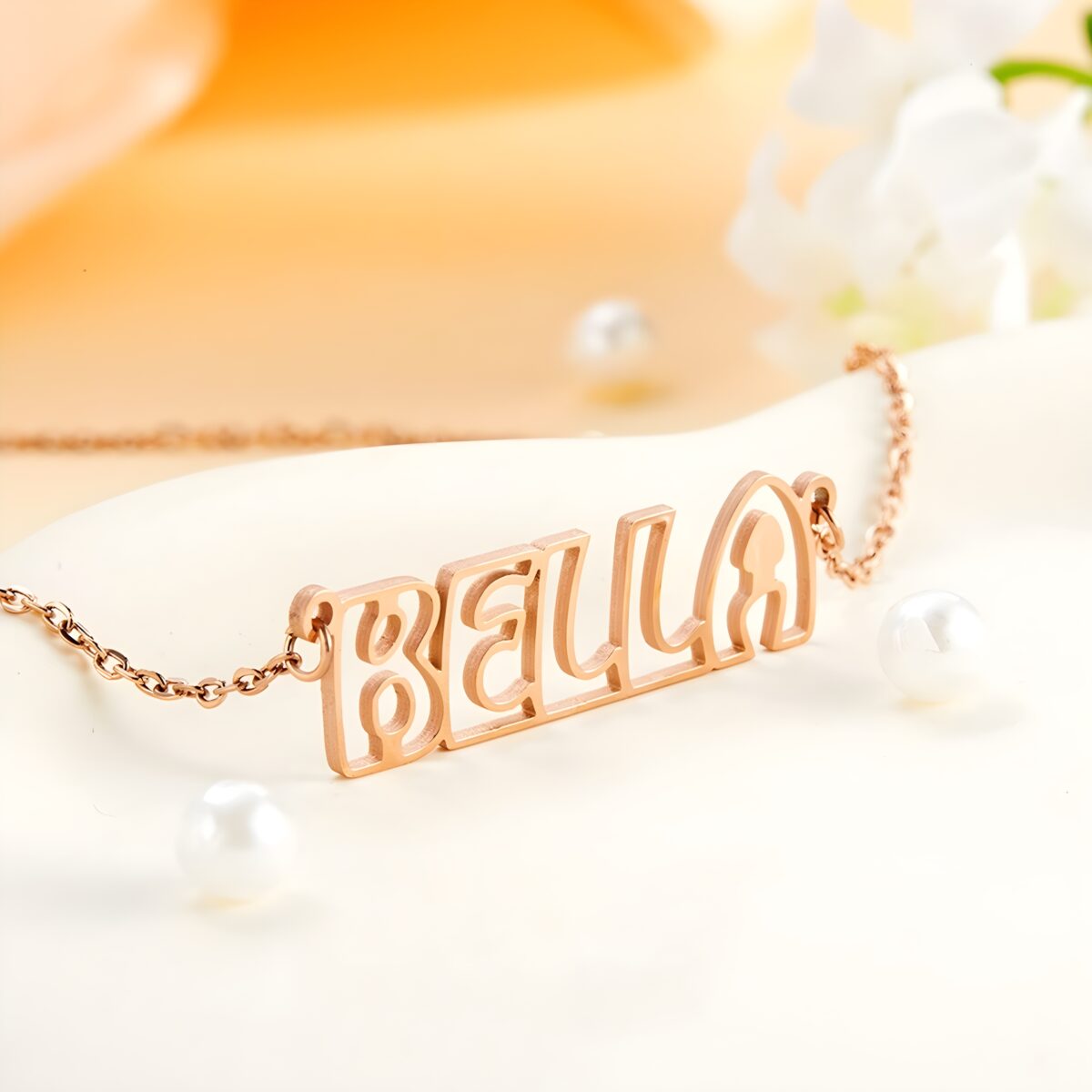 Carry Her Name Close – Custom Hollow Font Name Necklace – A Tender Treasure for Her Special Day