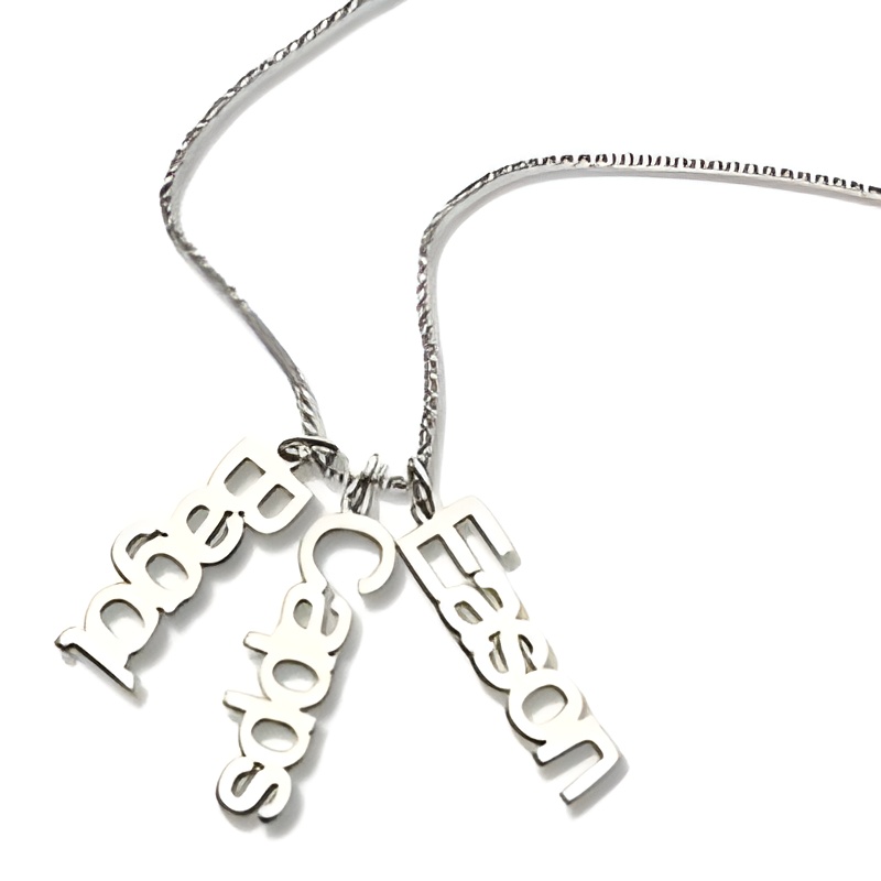 This vertical multi-name necklace is more than jewelry; it’s a symbol of love and connection that you can wear close to your heart. Combining personalized meaning with sterling silver’s enduring shine, it becomes a treasured keepsake for generations. Crafted the Eolante Way.