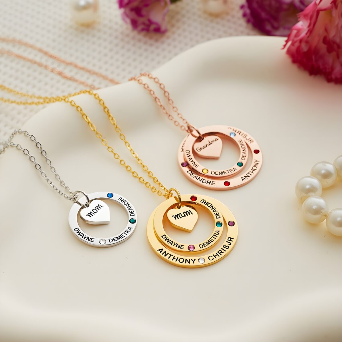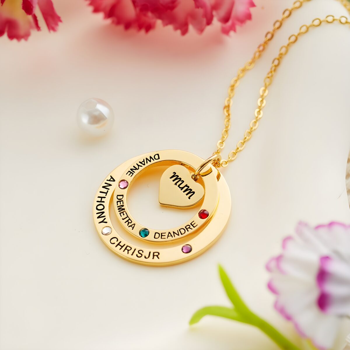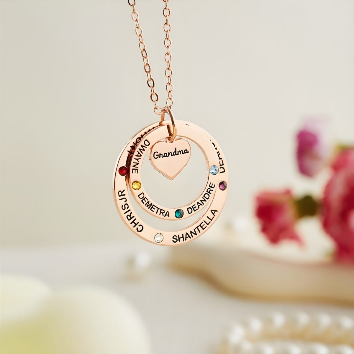 Embrace Her Heart – Custom Birthstone Necklace with Names – A Cherished Gift for Mom & Grandma