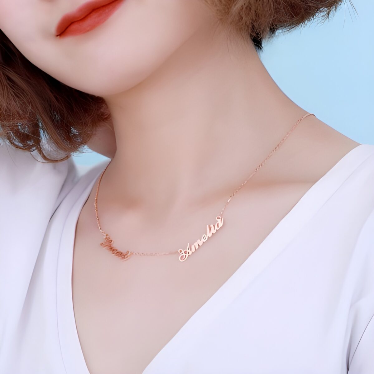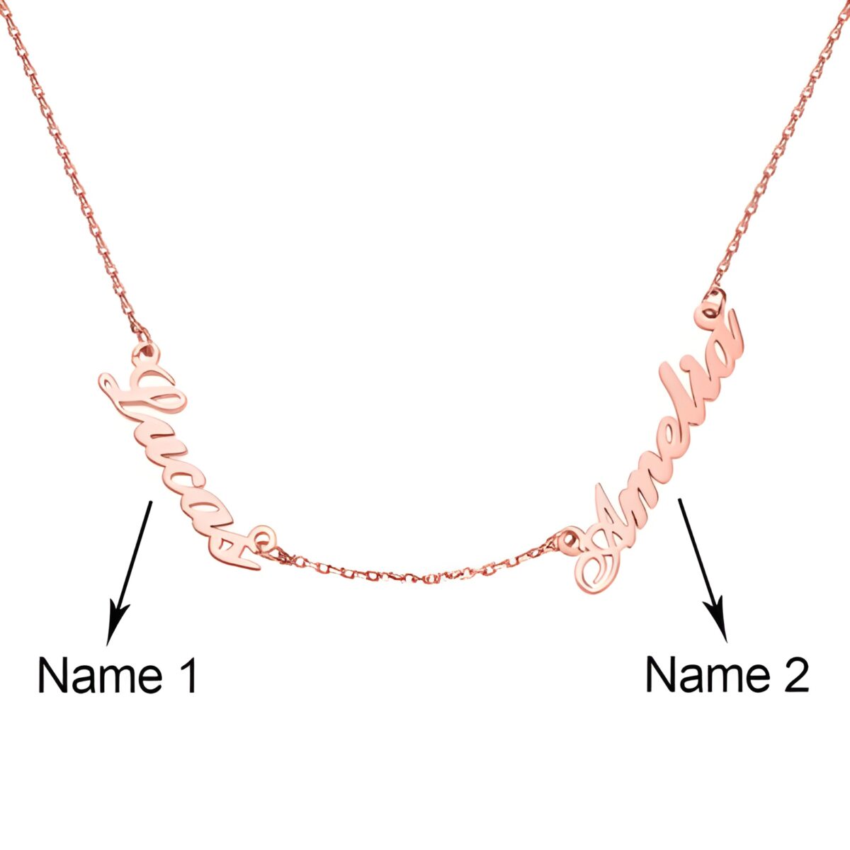 This elegant double name necklace is designed to hold the names that matter most to your heart. Whether it’s the names of your beloved partner, cherished children, dear parents, or even a treasured pet, this piece becomes a personal symbol of love and connection. Perfectly balanced with names on both sides, it reflects the harmony and beauty of your unique bond.