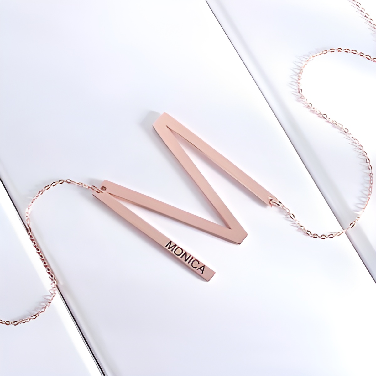 ✨ Carry your unique story with this sideways initial necklace in rose gold, designed for timeless elegance and personal expression.