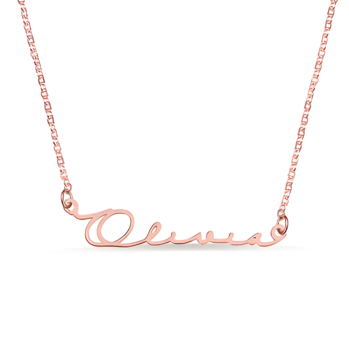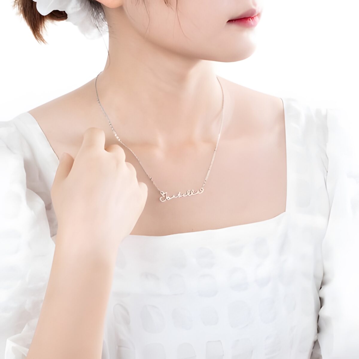 This graceful name necklace is designed for those who wish to carry a piece of their story close to their heart. Whether it bears your own name, a beloved’s, or an inspiring word, its delicate cursive design transforms a simple accessory into a meaningful expression of identity and connection.