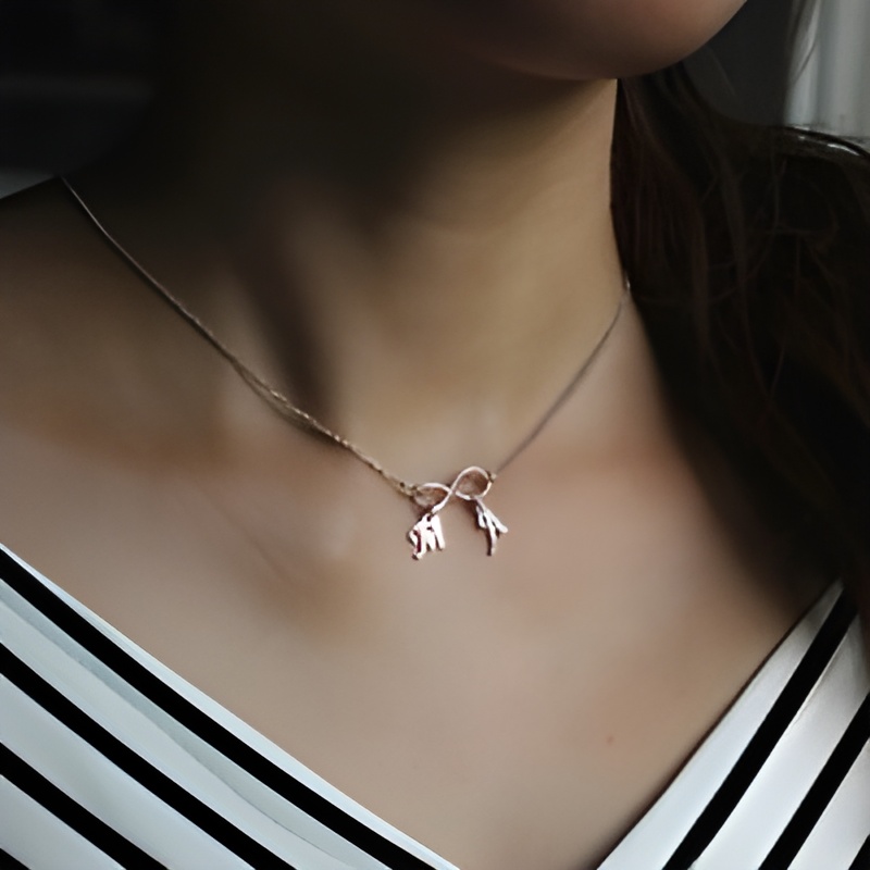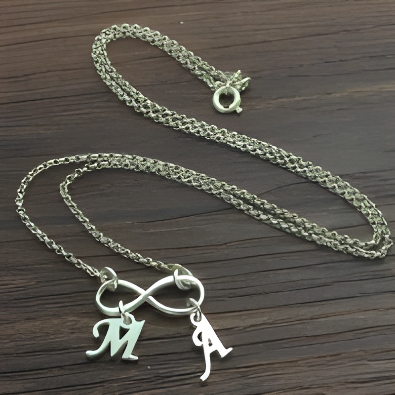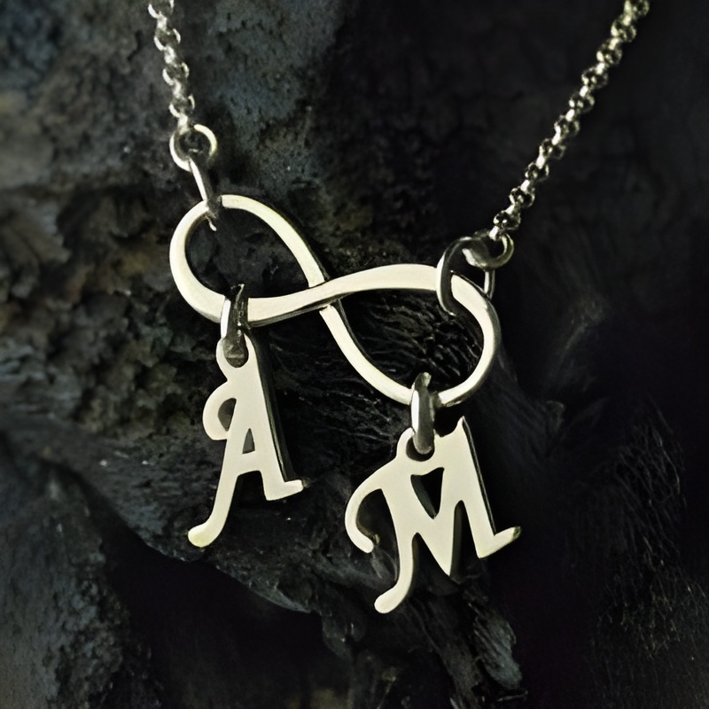 This exquisite necklace is designed for those who treasure the unbreakable ties between hearts. Featuring a graceful infinity symbol intertwined with two initials, it captures the beauty of everlasting love and friendship. A meaningful adornment that speaks to the soul, it invites you to carry your most precious connections close.