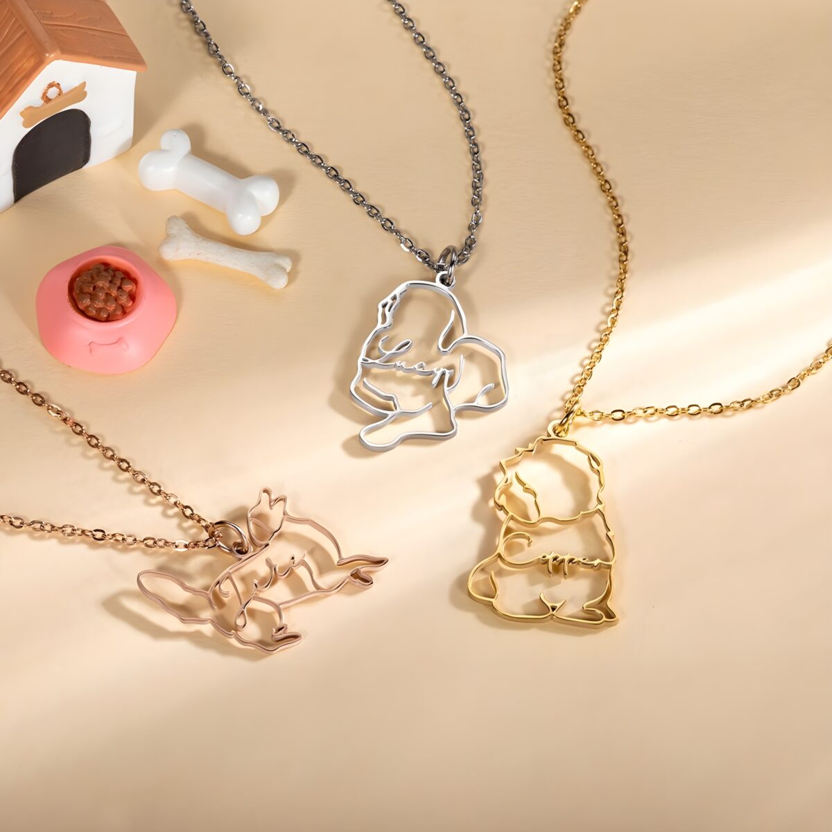 🐶 Keep your beloved pet close with this custom dog silhouette necklace featuring your dog’s outline and name, a touching memorial and daily reminder of your special bond.