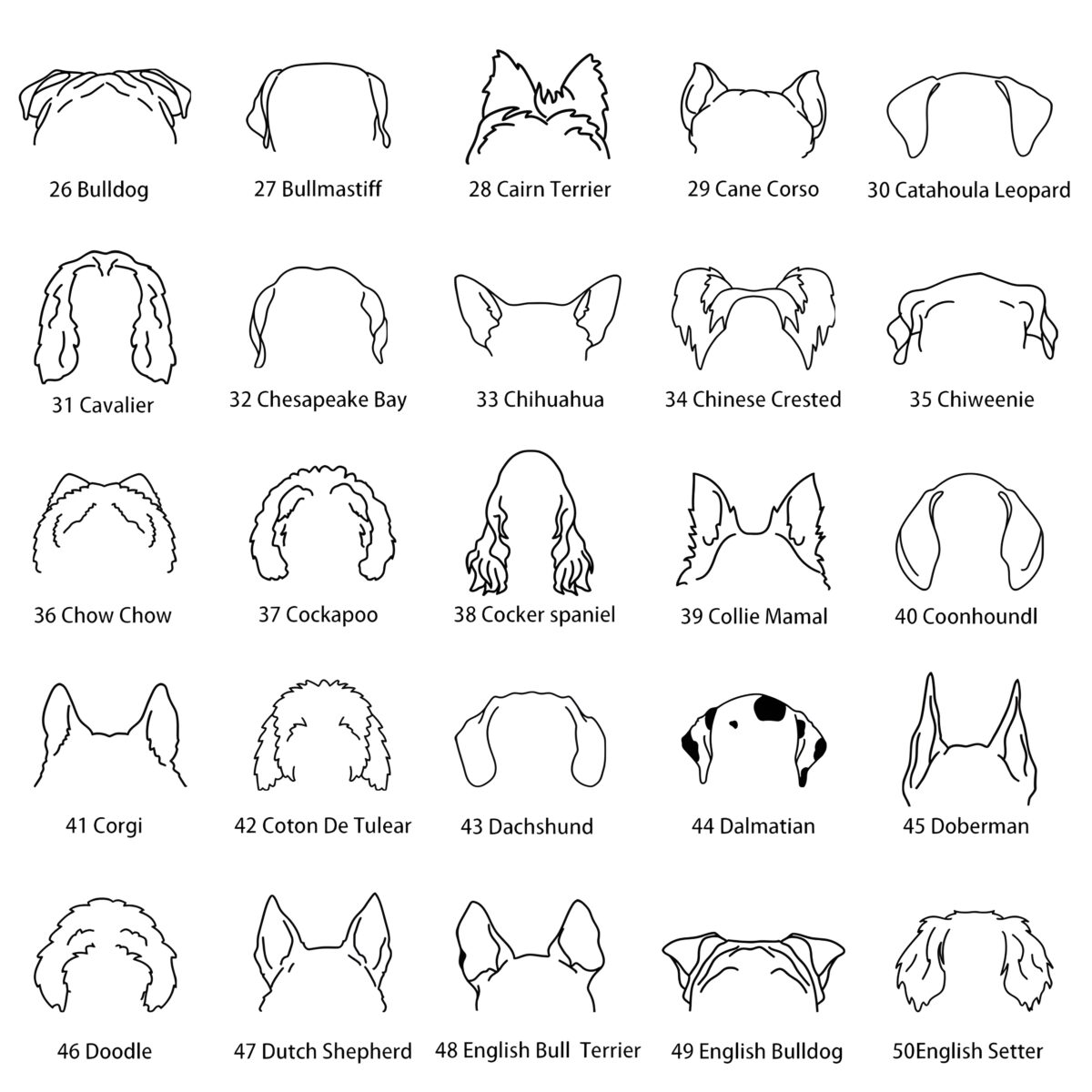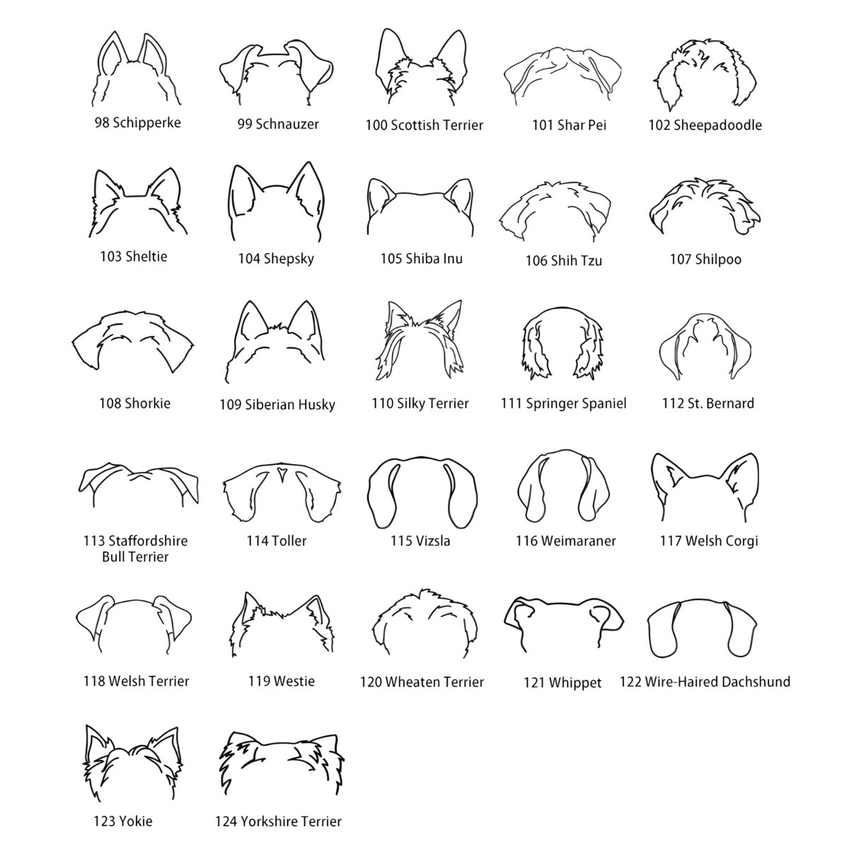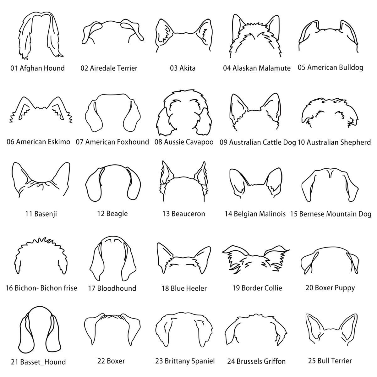 Choose an option 01 Afghan Hound 02 Airedale Terrier 03 Akita 04 Alaskan Malamute 05 American Bulldog 06 American Eskimo 07 American Foxhound 08 Aussie Cavapoo 09 Australian Cattle Dog 10 Australian Shepherd 11 Basenji 12 Beagle 13 Beauceron 14 Belgian Malinois 15 Bernese Mountain Dog 16 Bichon-Bichon Frise 17 Bloodhound 18 Blue Heeler 19 Border Collie 20 Boxer Puppy 21 Basset Hound 22 Boxer 23 Brittany Spaniel 24 Brussels Griffon 25 Bull Terrier 26 Bulldog 27 Bullmastiff 28 Cairn Terrier 29 Cane Corso 30 Catahoula Leopard 31 Cavalier 32 Chesapeake Bay 33 Chihuahua 34 Chinese Crested 35 Chiweenie 36 Chow Chow 37 Cockapoo 38 Cocker Spaniel 39 Collie Mamal 40 Coonhound 41 Corgi 42 Coton De Tulear 43 Dachshund 44 Dalmatian 45 Doberman 46 Doodle 47 Dutch Shepherd 48 English Bull Terrier 49 English Bulldog 50 English Setter 51 French Bulldog 51-1 Fox Terrier 52 German Shorthair Pointers 53 Golden Doodle 54 Golden Retriever 55 Grayhound 56 Great Dane 57 Great Pyrenees 57-1 German shepherd 58 Havsnese 59 Hungarian Vizsla 60 Husky 61 Irish Setter 62 Italian Greyhound 63 Jack Russell Terrier 64 Japanese Chin 65 Keeshond 66 King Charles Spaniel 67 Labradoodle 68 Labrador Puppy 69 Labrador-labrador retriever 70 Lhasa Apso 71 Long haired Dachshund 72 Maltese 73 Maltipoo 74 Mastiff 75 Mini Foxie 76 Mini Pin(Miniature Pinscher) 77 Morkie 78 Newfoundland 79 Norwegian Elkhound 80 Old English Sheepdog 81 Papillon 82 Pekingese 83 Pit Bull 84 Pitsky 85 Pointer 86 Pomeranian 87 Pomsky 88 Poodle 89 Portuguese 90 Pug 90-1 Pitbull 91 Puggle 92 Rat Terrier 93 Retriever German Shepherd 94 Rhodesian Ridgeback 95 Rottweiler 96 Ruseu Terrier 97 Samoyed 98 Schipperke 99 Schnauzer 100 Scottish Terrier 101 Shar Pei 102 Sheepadoodle 103 Sheltie 104 Shepsky 105 Shiba Inu 106 Shih Tzu 107 Shilpoo 108 Shorkie 109 Siberian Husky 110 Silky Terrier 111 Springer Spaniel 112 St. Bernard 113 Staffordshire Bull Terrier 114 Toller 115 Vizsla 116 Weimaraner 117 Welsh Corgi 118 Welsh Terrier 119 Westie 120 Wheaten Terrier 121 Whippet 122 Wire-Haired Dachshund 123 Yokie 124 Yorkshire Terrier