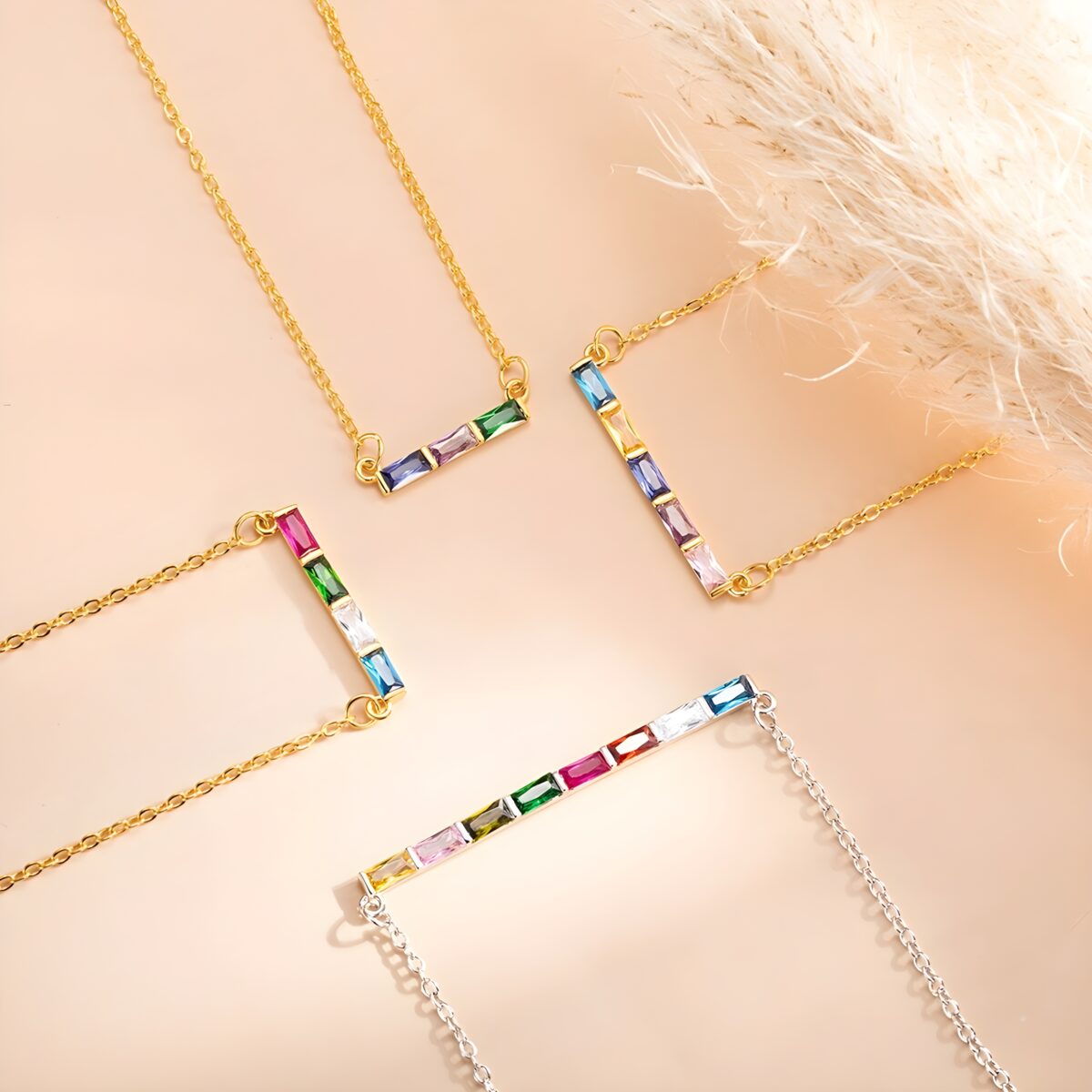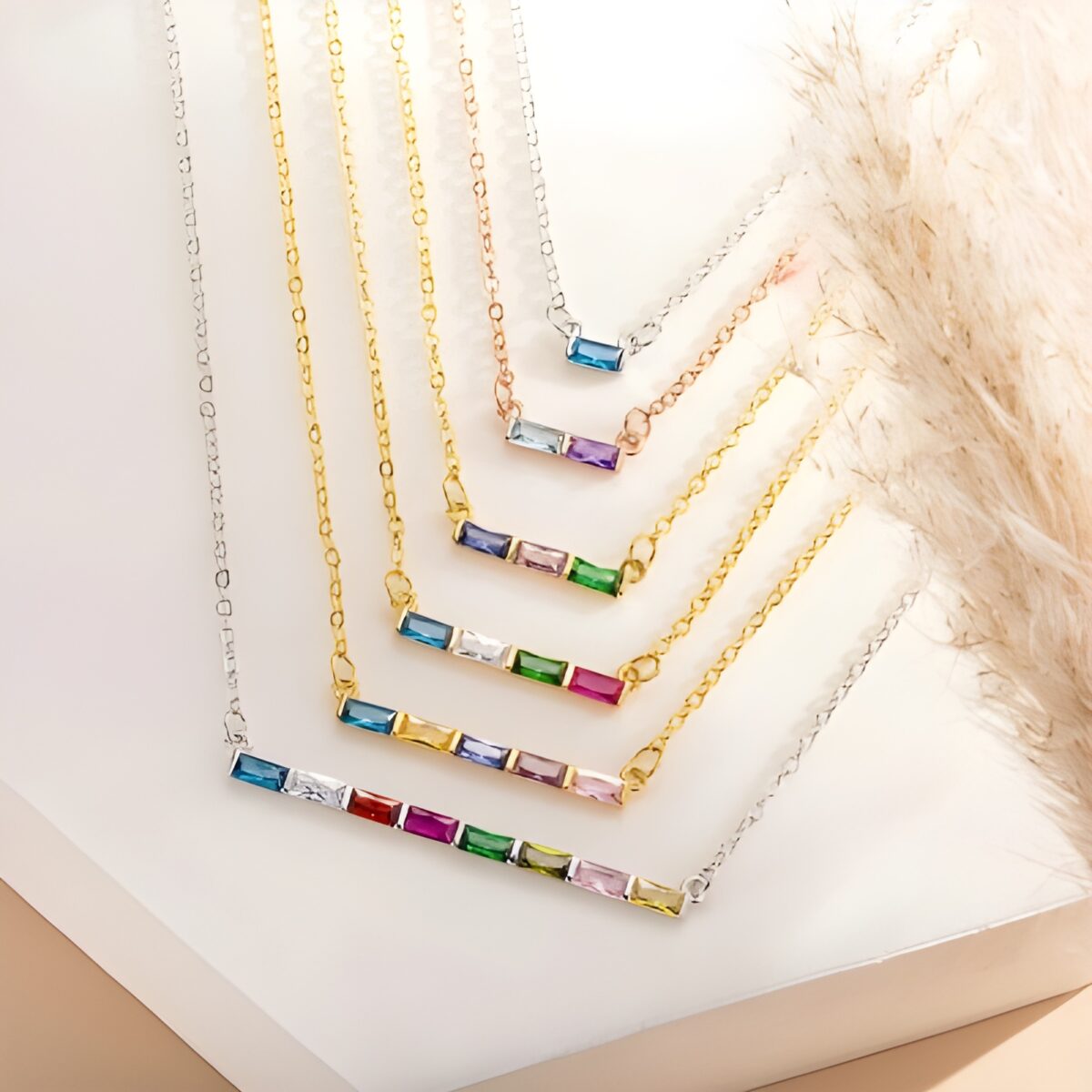 Style: Personalized Rectangular Birthstones Pendant Necklace