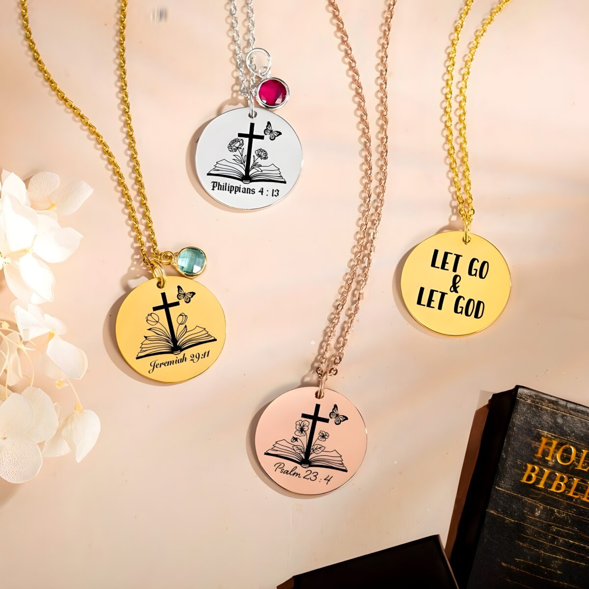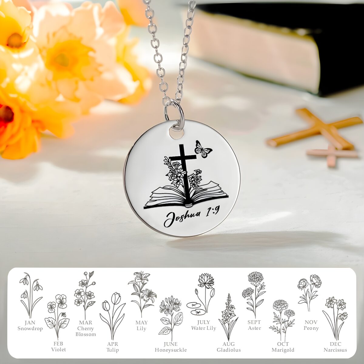 • 📖 Meaningful Design – The open Bible symbolizes learning and grace, while the birth flower and stone celebrate life and personal growth.