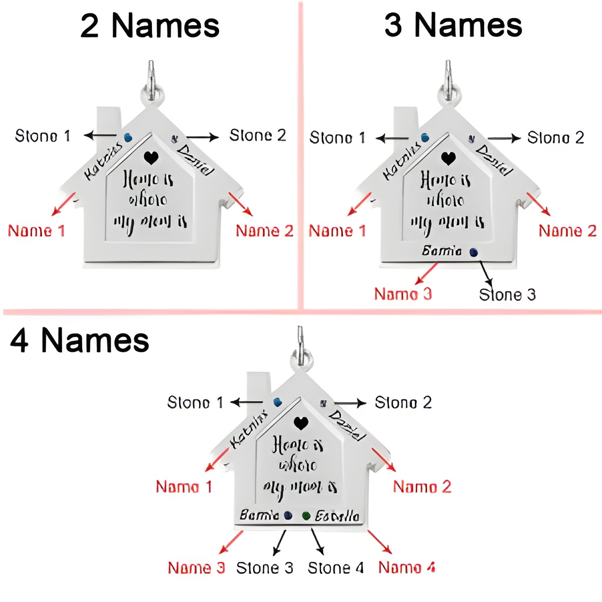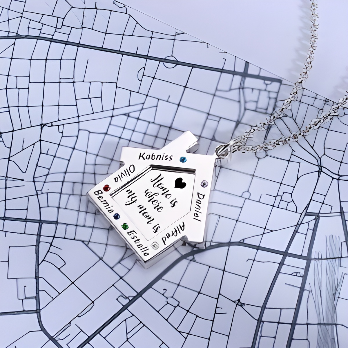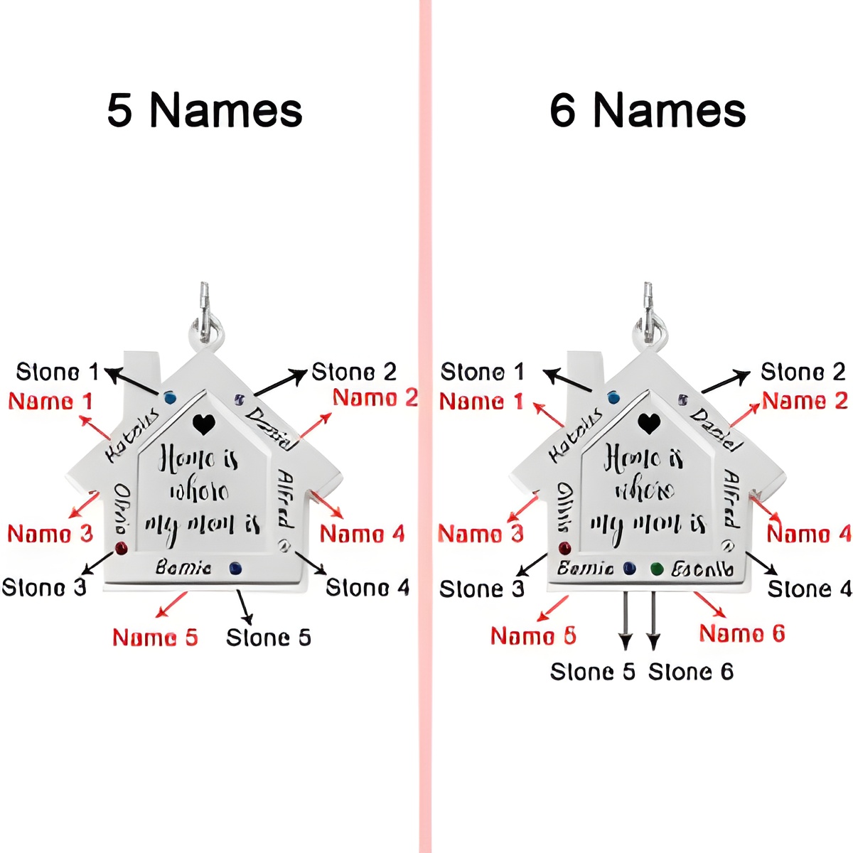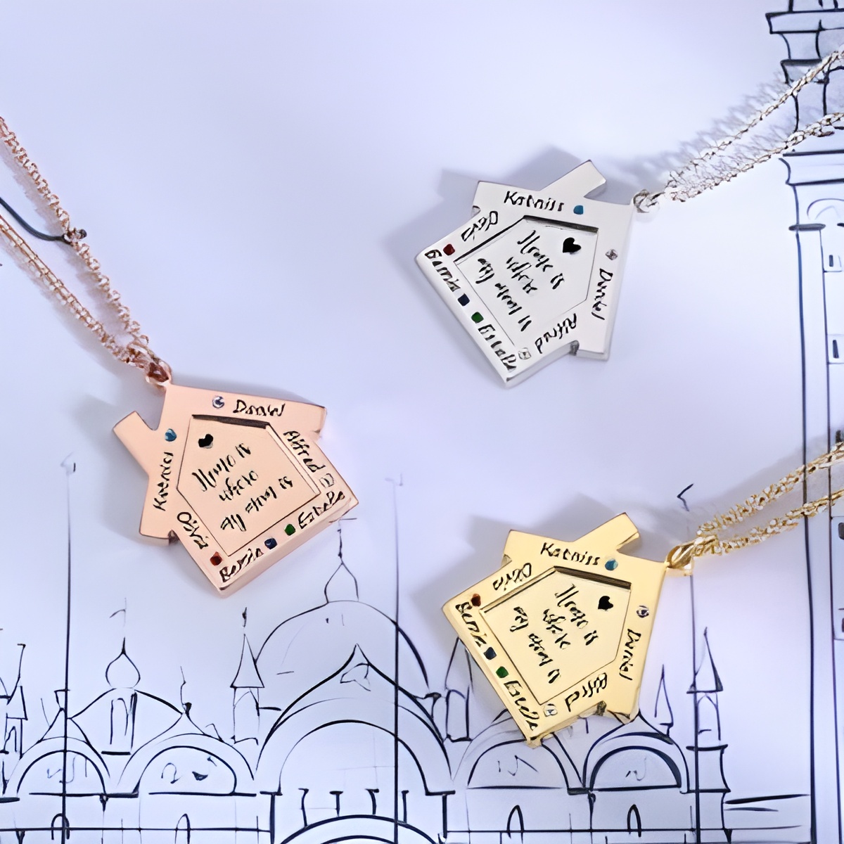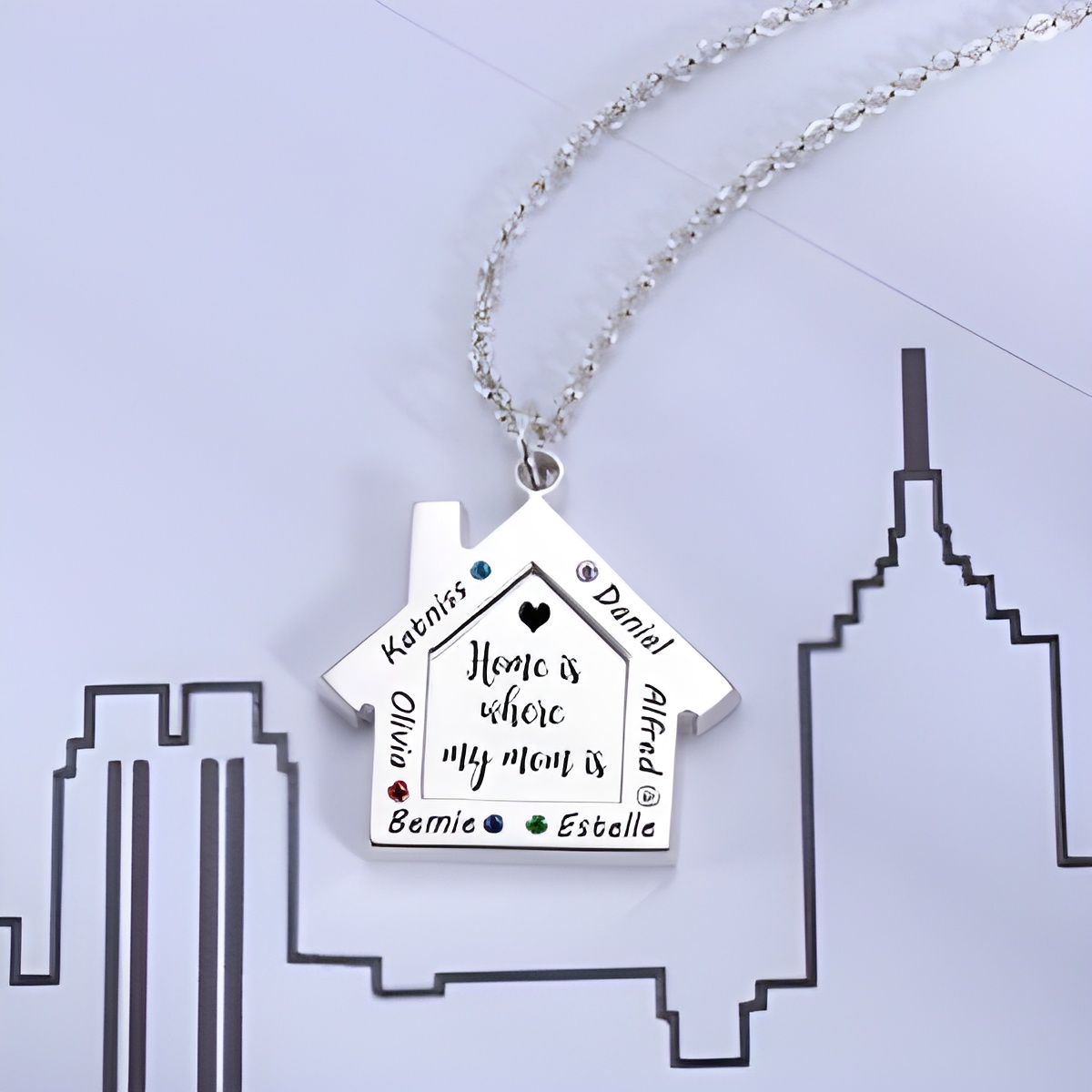 This necklace is a heartfelt homage to the woman who makes a house a home. Crafted for mothers who embody love, protection, and unwavering care, it celebrates the special bond of family through a delicate birthstone and personalized family name. Wearing this piece is like carrying a warm embrace, a constant reminder that home truly is where mom is.