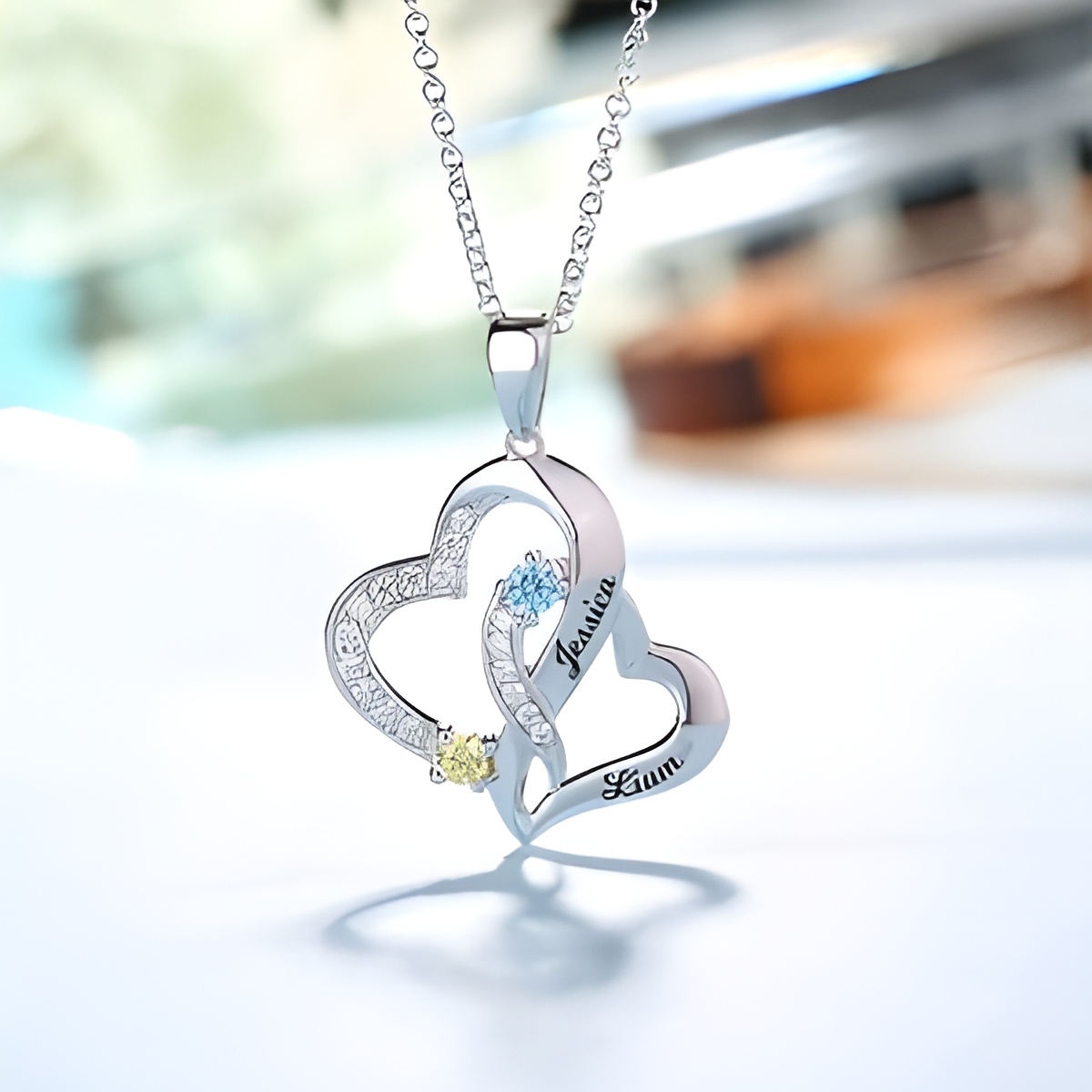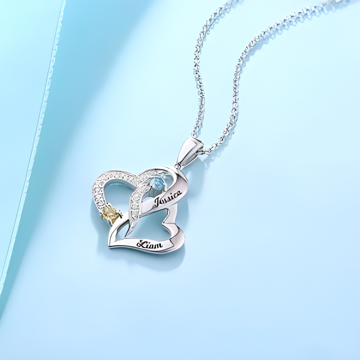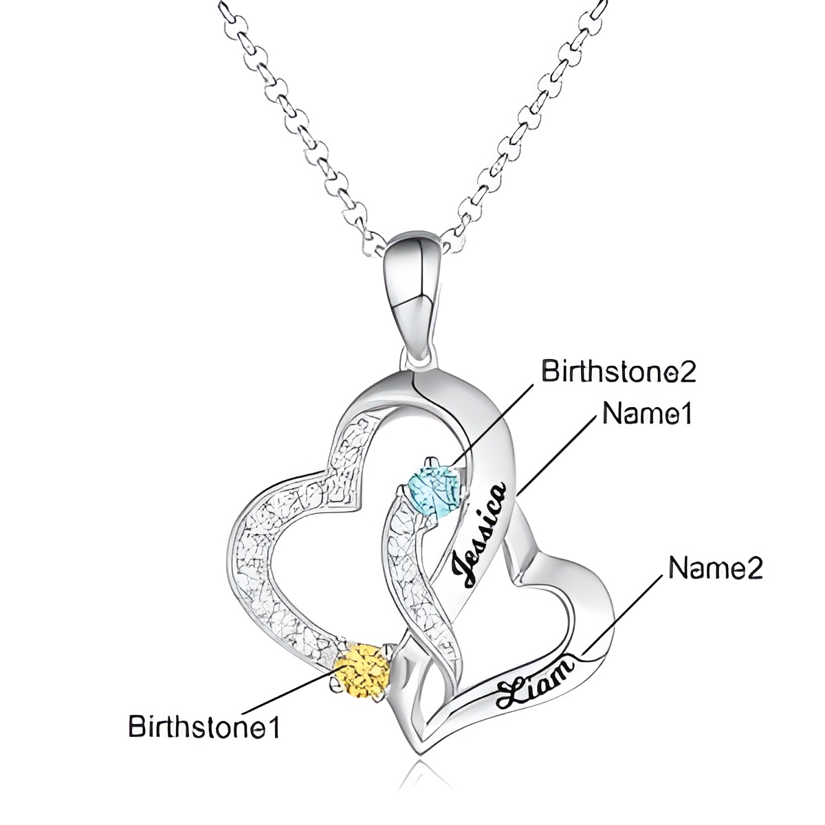 Embrace Your Love Story – Double Heart Name & Birthstone Necklace – A Cherished Keepsake for Your Beloved