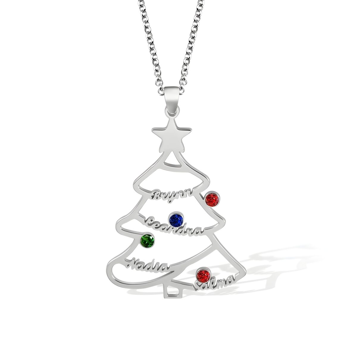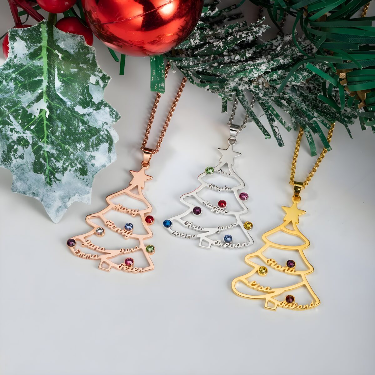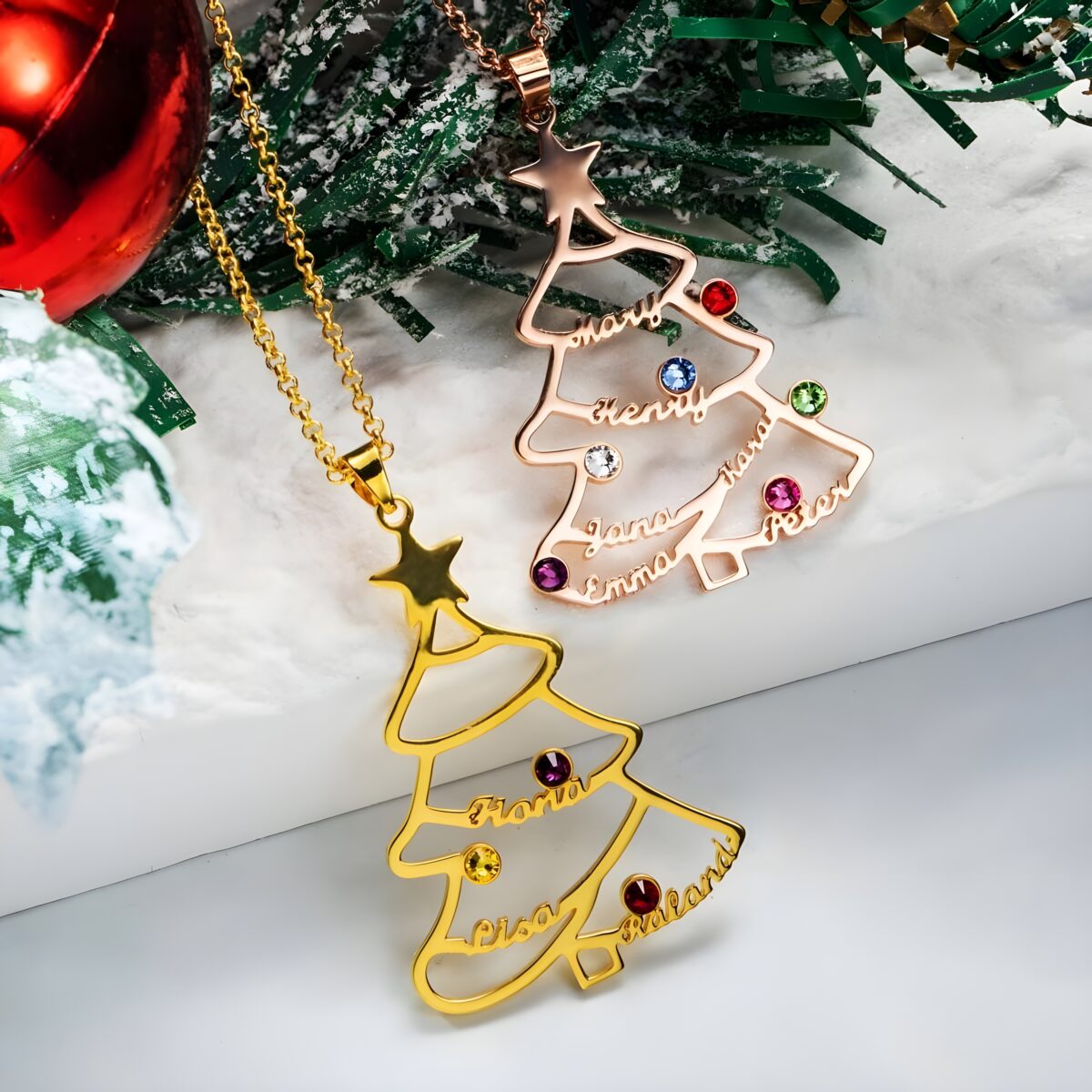 This enchanting necklace, shaped like a Christmas tree, is designed to carry the warmth of your loved ones close to your heart. Perfect for celebrating family bonds, it beautifully captures the joy and love of the holiday season with personalized names and birthstones that tell your unique story.