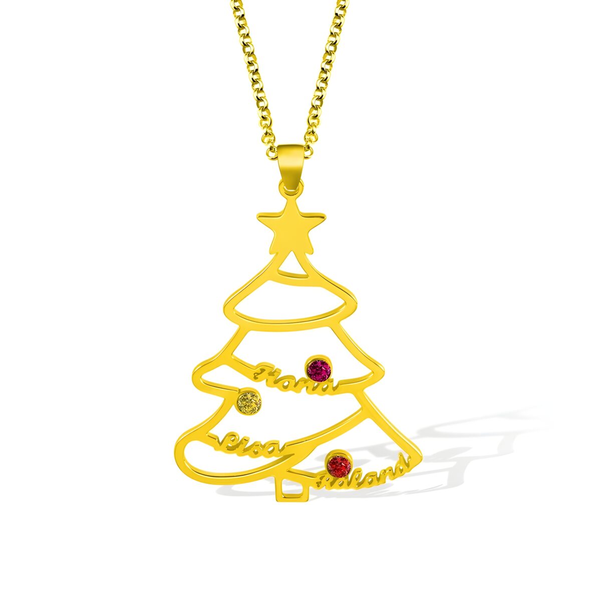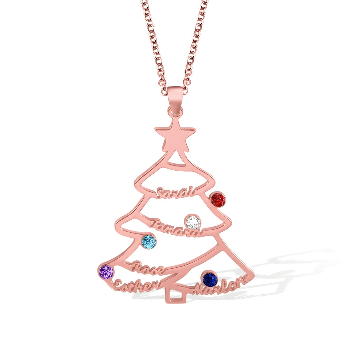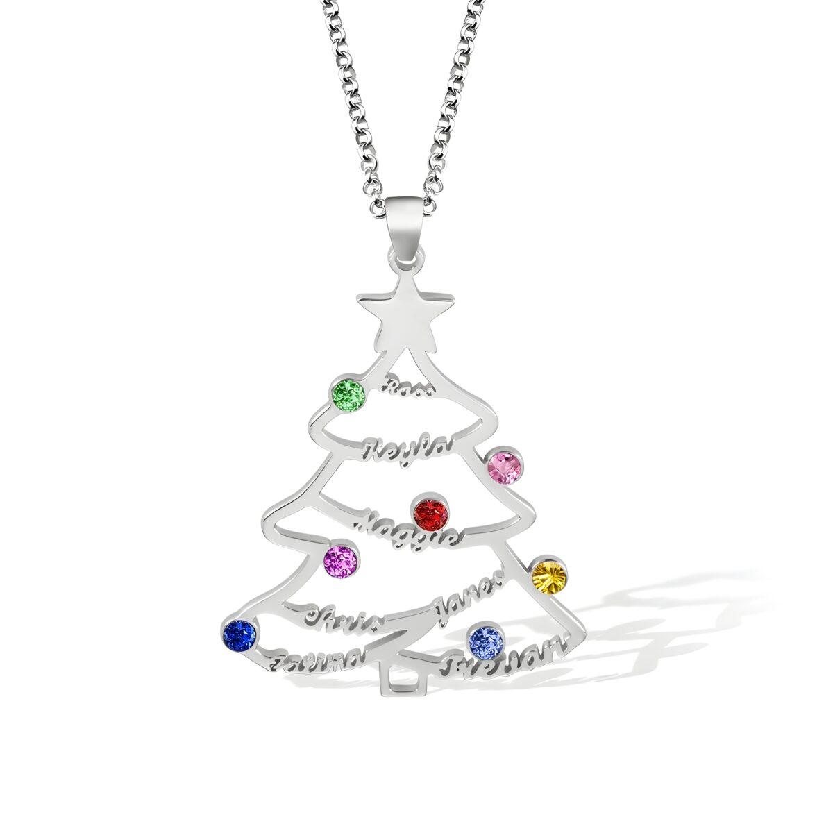 This enchanting necklace, shaped like a Christmas tree, is designed to carry the warmth of your loved ones close to your heart. Perfect for celebrating family bonds, it beautifully captures the joy and love of the holiday season with personalized names and birthstones that tell your unique story.