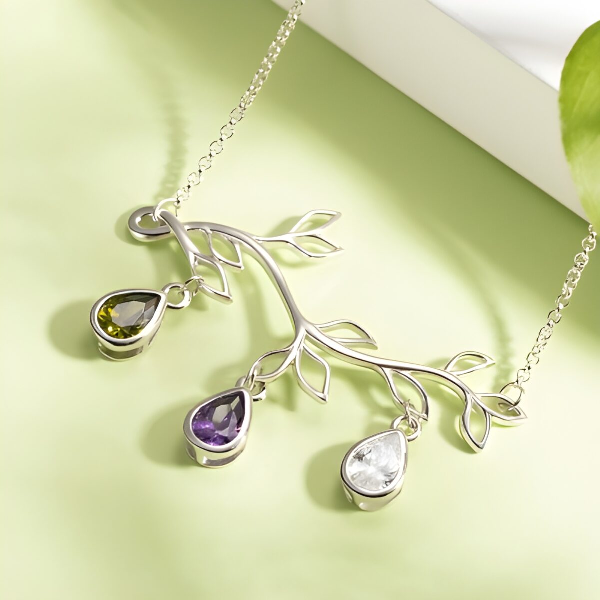 Embrace Your Roots – Birthstone Family Tree Necklace – A Cherished Keepsake for Mothers and Grandmothers