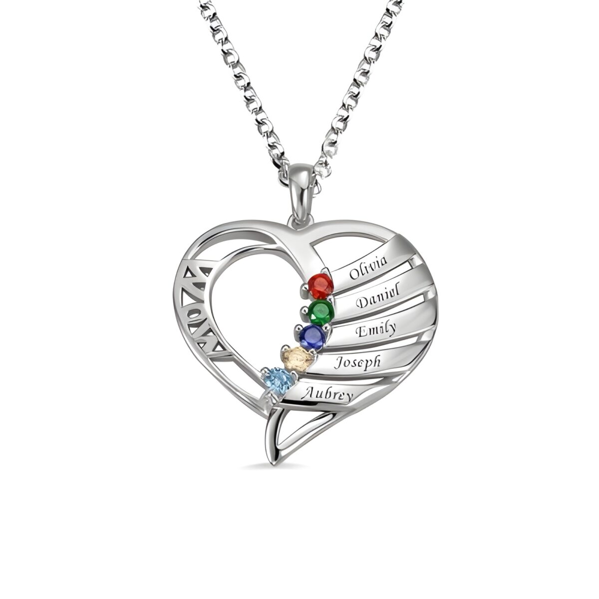 This exquisite necklace is designed for the heart of the family – the mother whose love and strength shine through every day. Featuring up to six engraved names paired with their unique birthstones, it tells the beautiful story of her children and the unbreakable bonds they share.