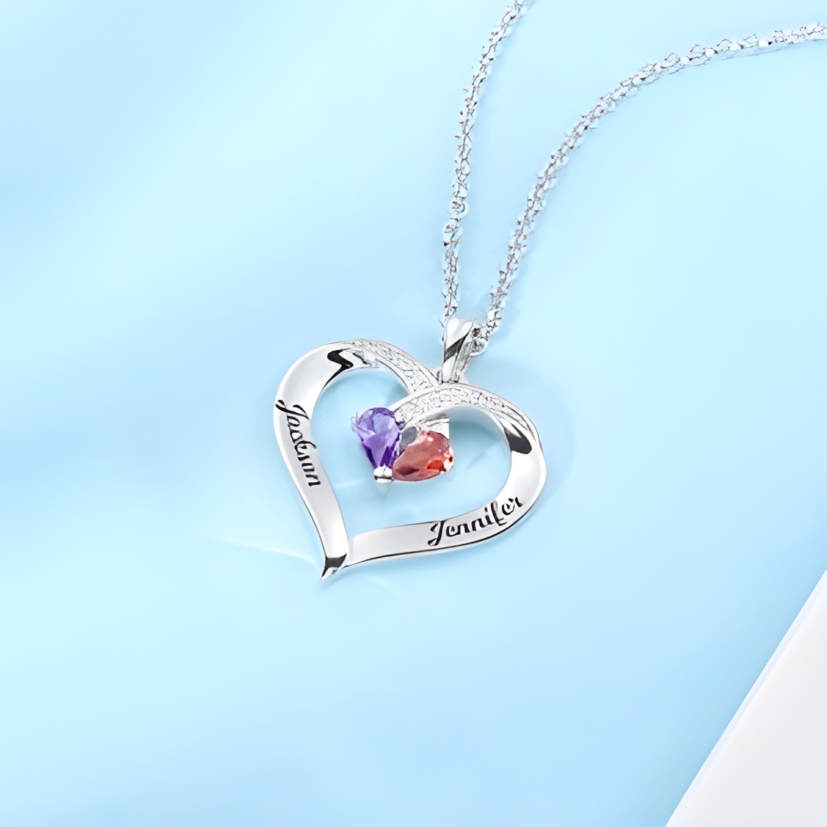 Intertwined Hearts of Love – Engraved Birthstone Necklace – A Timeless Embrace for Two Souls