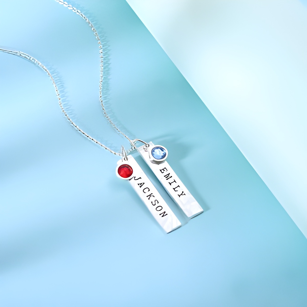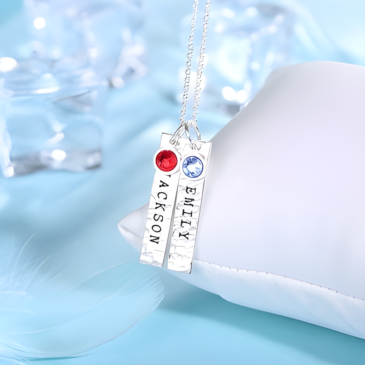 This delicate hammered bar necklace, crafted from pure silver, is more than just jewelry—it’s a heartfelt keepsake. Designed to carry the names and birthstones of those closest to your heart, it beautifully captures the essence of your cherished relationships. Whether given to celebrate a birthday, Christmas, or Valentine’s Day, it’s a meaningful way to keep your loved ones near.