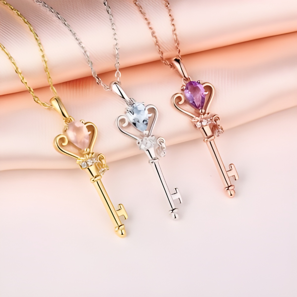 • 💖 Personalized Touch – A symbolic key pendant adorned with radiant gemstones that expresses love and devotion.