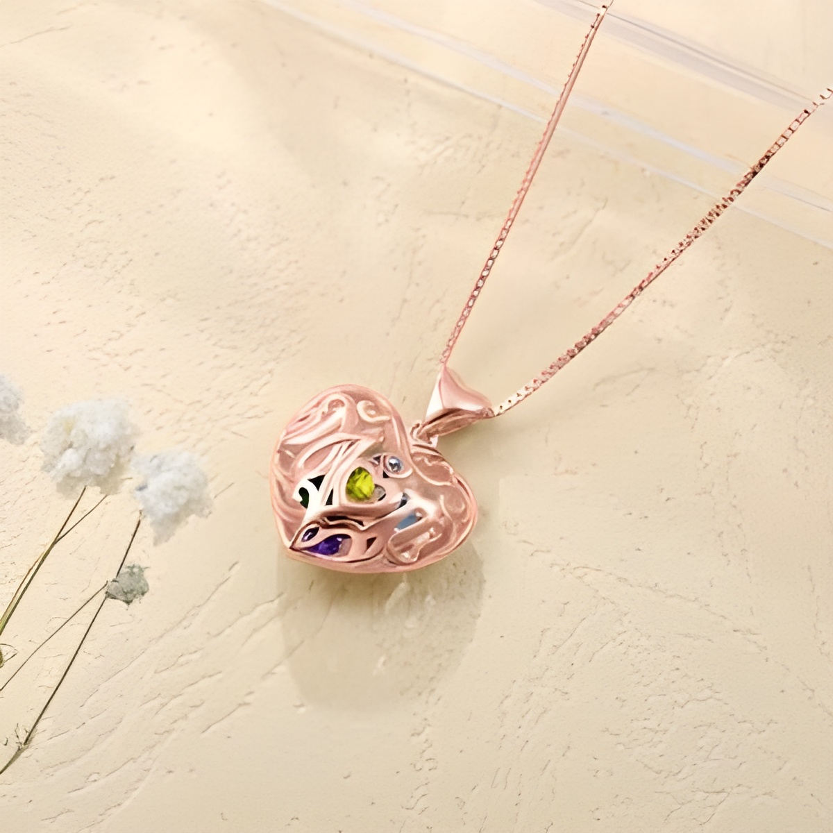 Celebrate the unique and precious bond you share with your mother through this exquisite Heart Cage Birthstone Necklace. Designed to symbolize the love that envelops her, this delicate pendant holds the warmth of family within its graceful heart-shaped cage, where each birthstone sparkles with personal meaning.