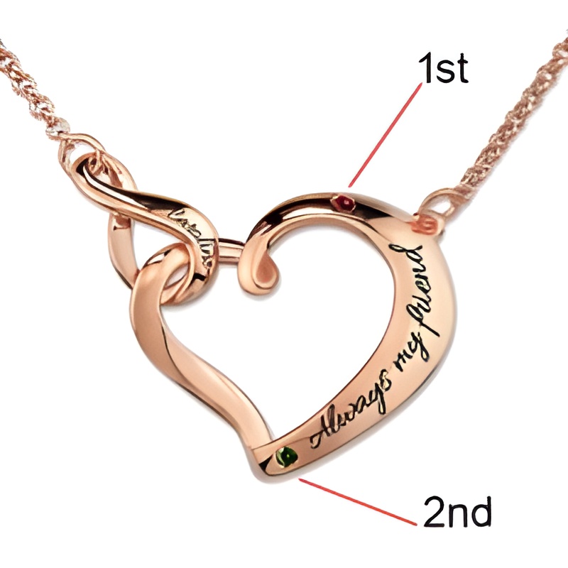 💎 A stunning heart and infinity birthstone necklace crafted to honor the everlasting bond between sisters with personalized engraving and delicate rose gold plating.