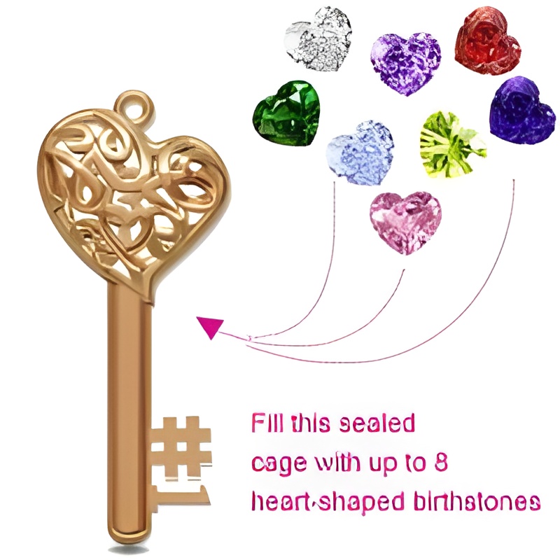 💖 Celebrate Mom with this heart cage key necklace in rose gold featuring up to eight radiant birthstones symbolizing family love.