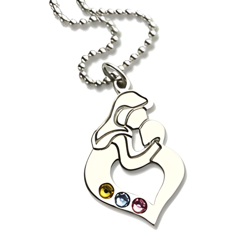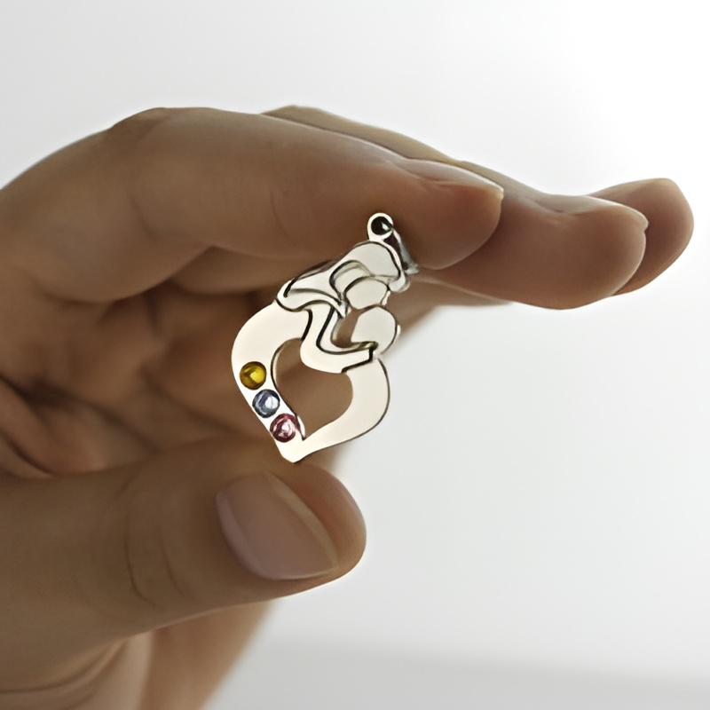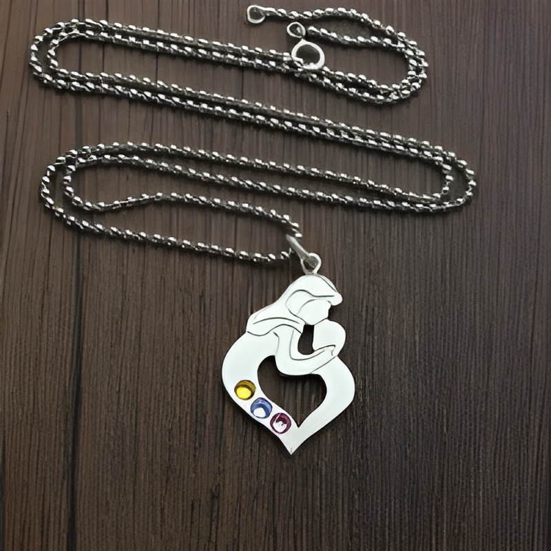 💞 A heartfelt mother and child necklace in sterling silver, adorned with up to three birthstones to celebrate the unique bond of motherhood.