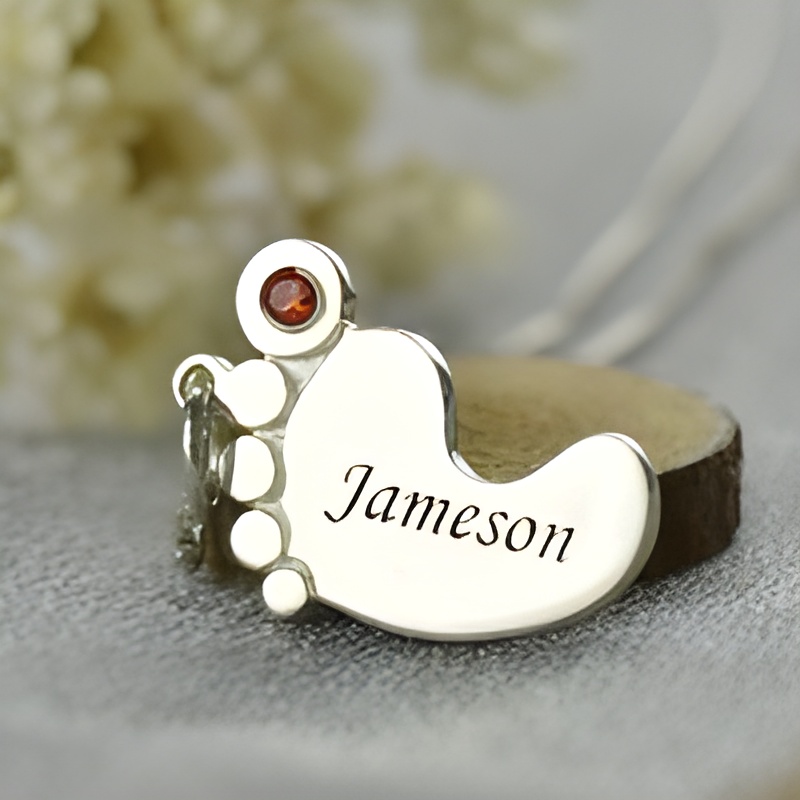 This delicate necklace is designed for mothers who treasure the precious moments of new life. Featuring tiny baby footprints, a lovingly inscribed name, and a sparkling birthstone, it symbolizes the deep bond between mother and child. Every wear is a tender reminder of the joy and love that came with their little one’s arrival.
