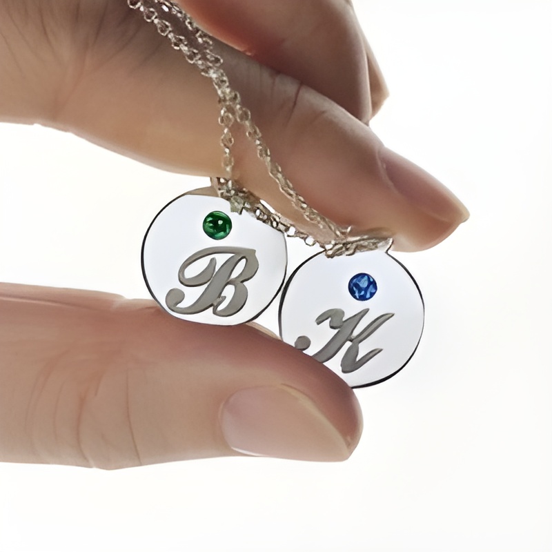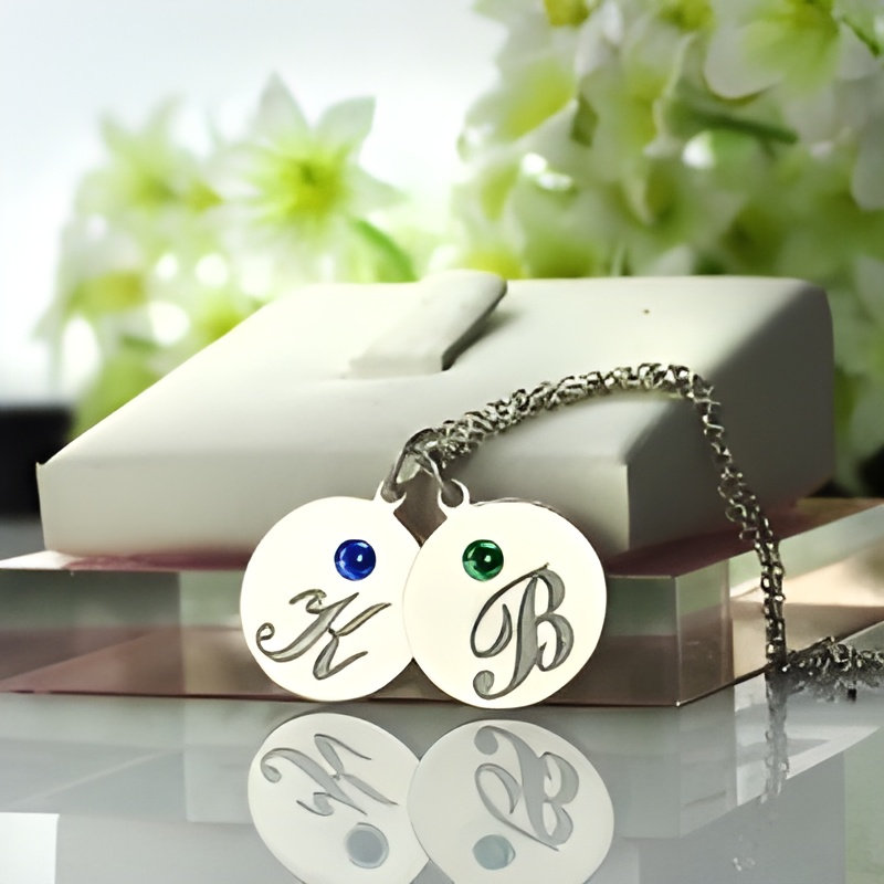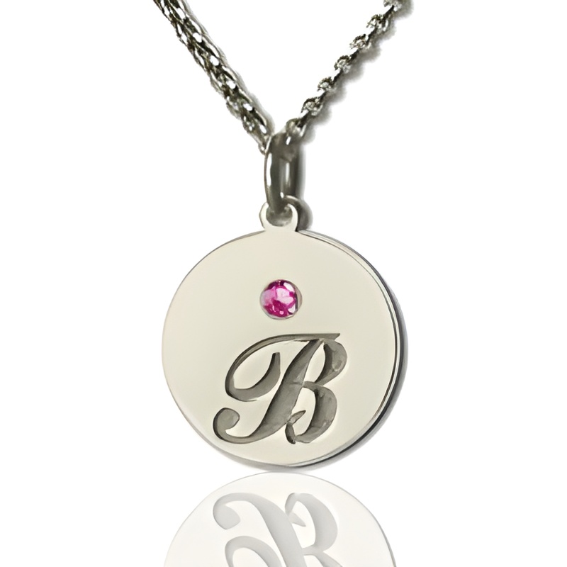 Keep Loved Ones Close – Sterling Silver Initial & Birthstone Disc Necklace – A Heartfelt Treasure for Her