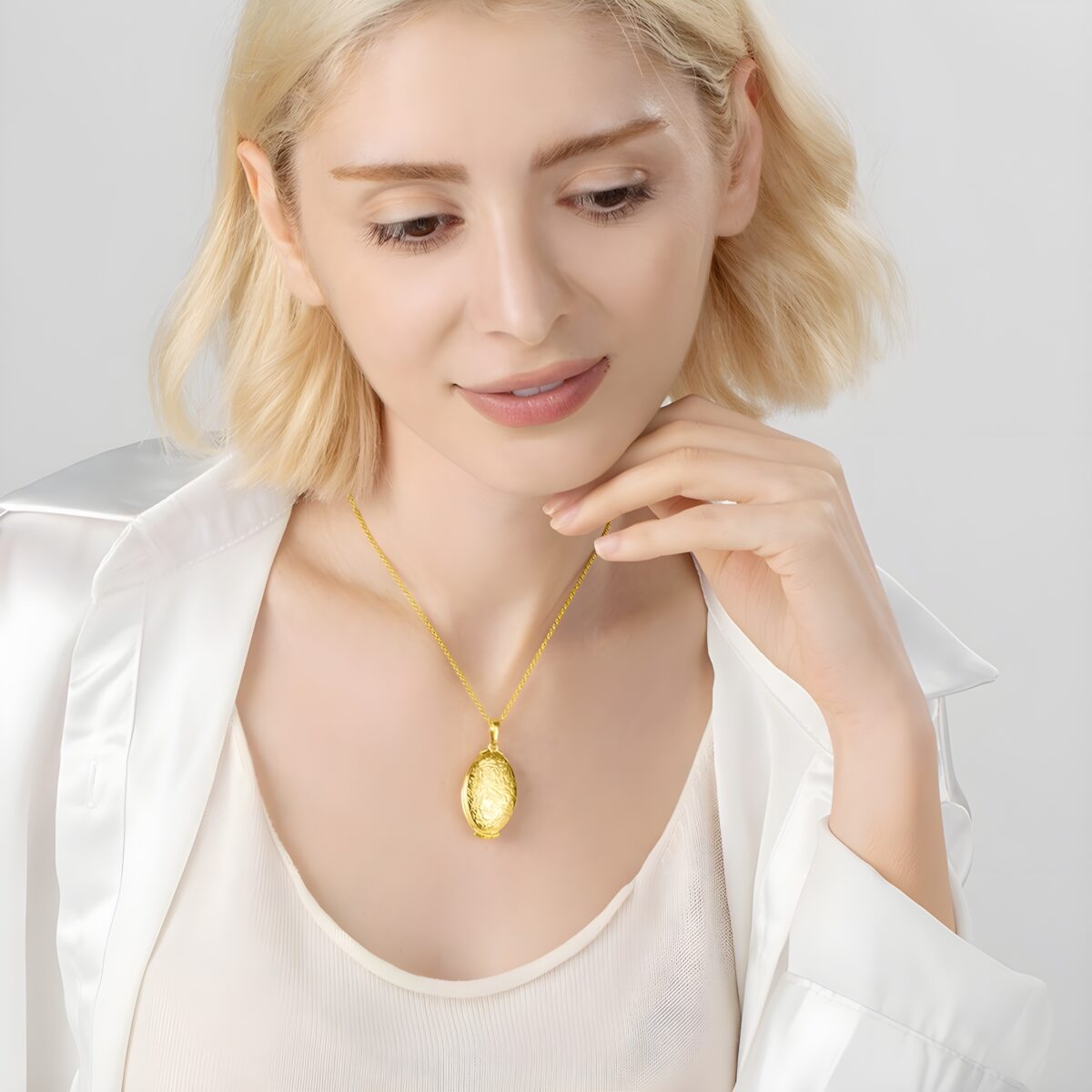 This oval locket necklace is more than jewelry; it is a vessel of memories and emotions, crafted to keep your loved ones eternally close. Its personalized design and durable craftsmanship make it a timeless treasure, lovingly created the Eolante Way.
