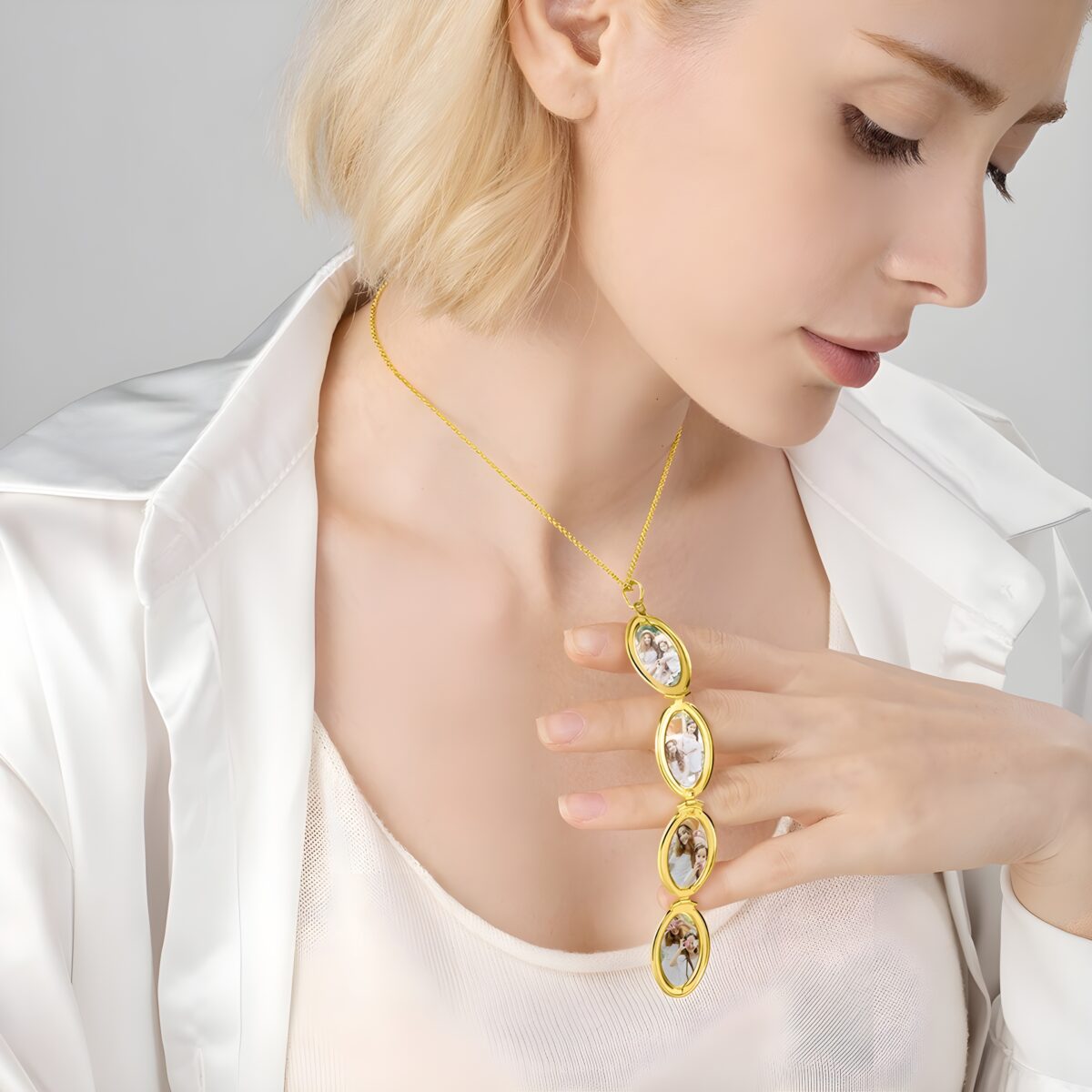 💖 Carry your most treasured moments with this oval four-photo locket necklace, a delicate keepsake designed to hold the faces and memories of those you love.
