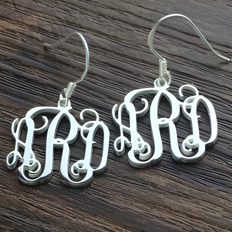 Celebrate the beauty of your individuality with these elegant sterling silver monogram earrings. Designed for those who cherish timeless style and personal expression, they carry your initials in a vintage-inspired font that whispers sophistication and charm.