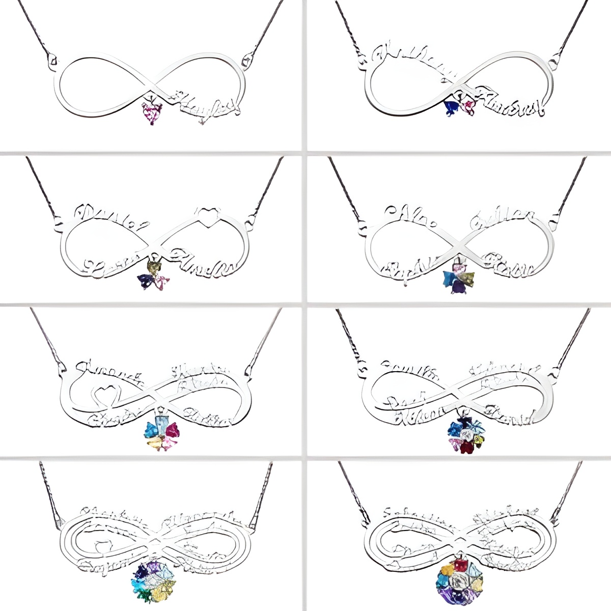 ✨ Carry your loved ones close with this infinity name necklace with birthstone, a timeless symbol of endless family bonds.