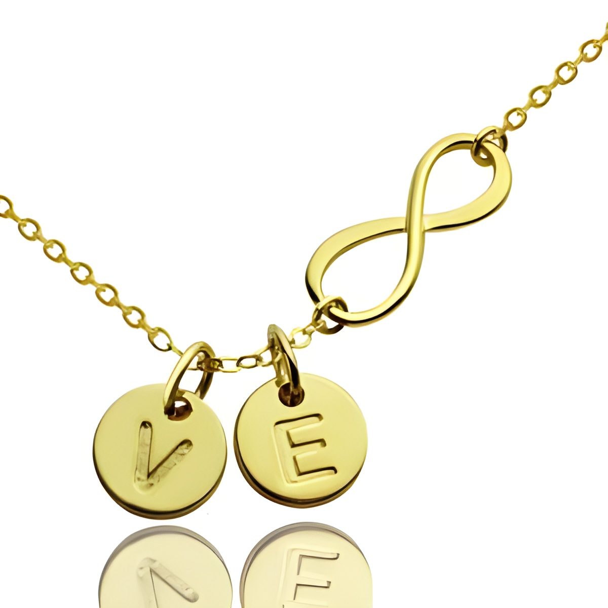 ✨ Adorn yourself or a loved one with this infinity necklace featuring an initial disc charm, symbolizing eternal bonds and personalized elegance.