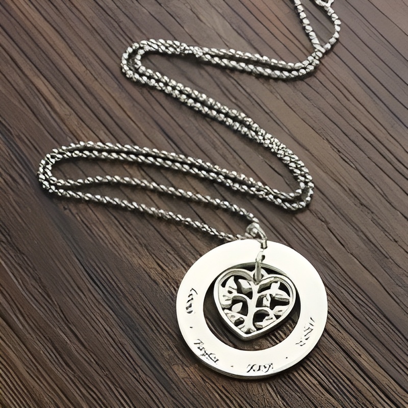 This delicate heart-shaped family tree necklace is a touching symbol of the love and stories shared between a mother and her children. Crafted to honor the nurturing bond, it carries the warmth of bedtime tales and gentle kisses, making it a meaningful keepsake for the woman who has always been there.