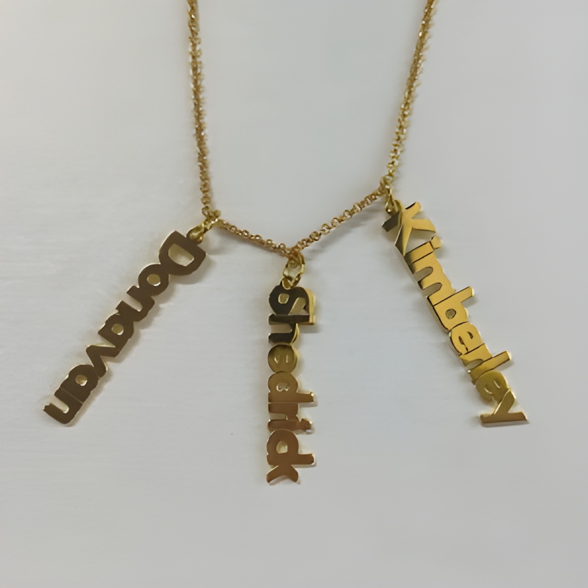 This exquisite vertical name necklace is designed for those who hold their loved ones closest to their heart. Crafted to carry up to five special names or words, it’s a heartfelt symbol of connection and affection, perfect for moms and grandmothers who cherish family bonds.