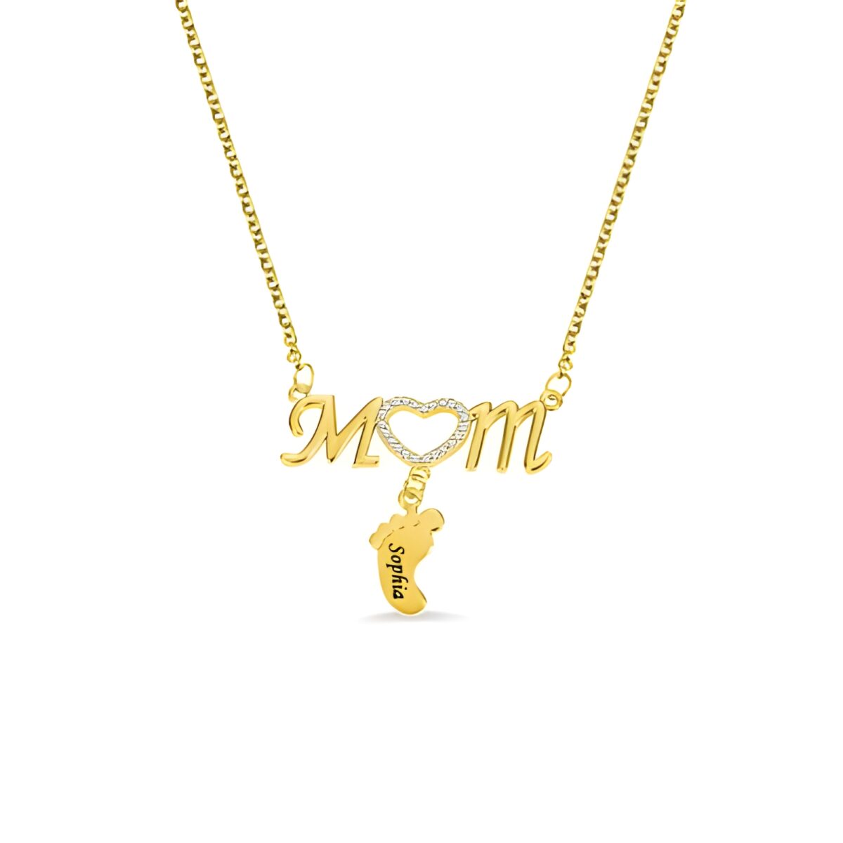 💎 Celebrate motherhood with this custom mom necklace featuring sparkling heart details and baby feet charms to honor her precious bond.