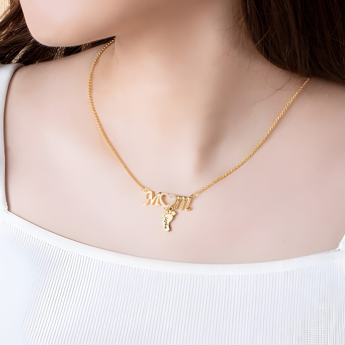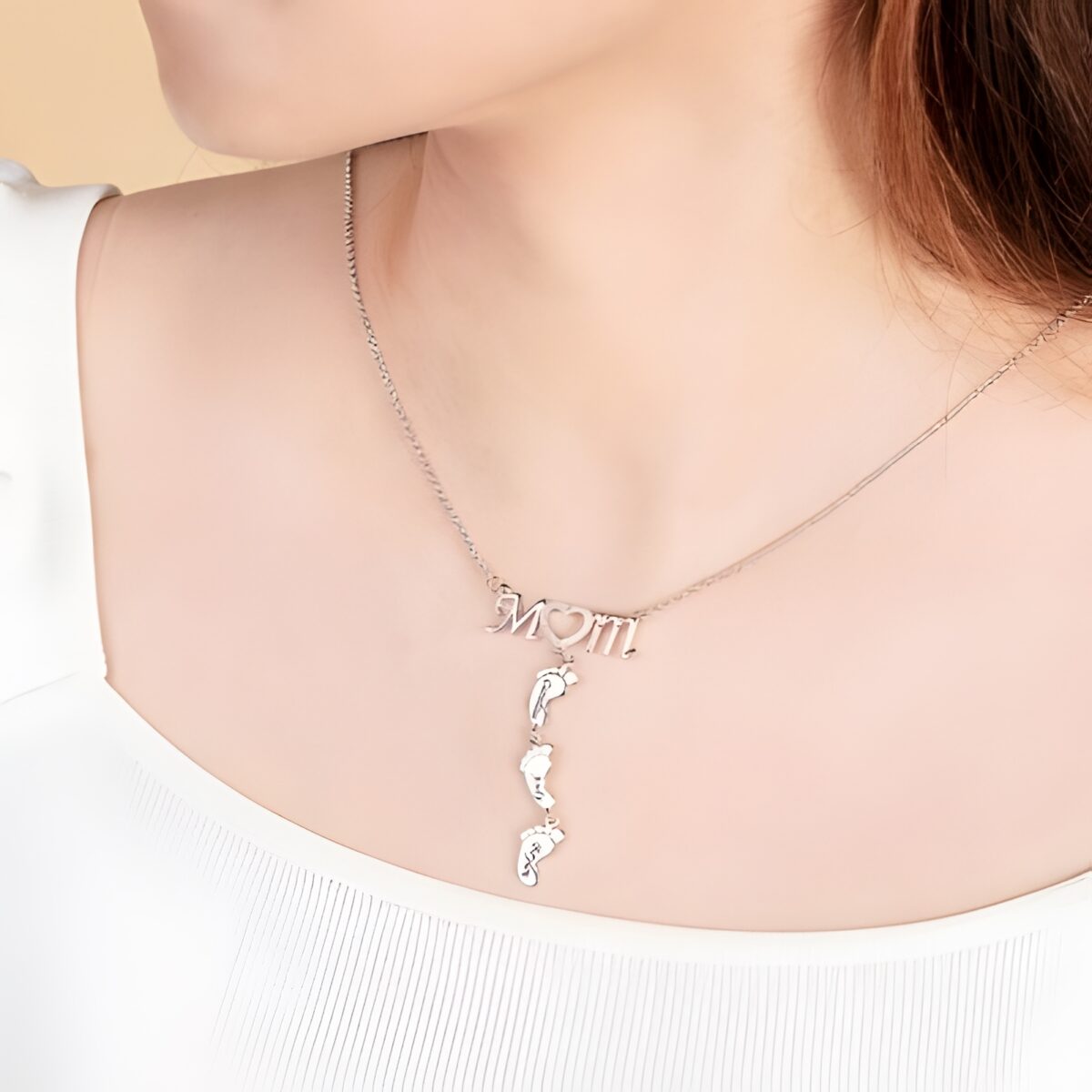 Carry Her Heart Close – Custom Mom Necklace with Baby Feet Charms – A Tender Tribute for New Mothers