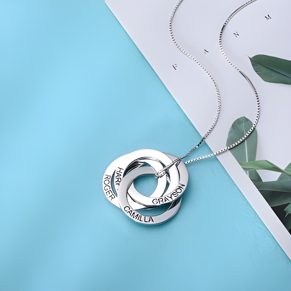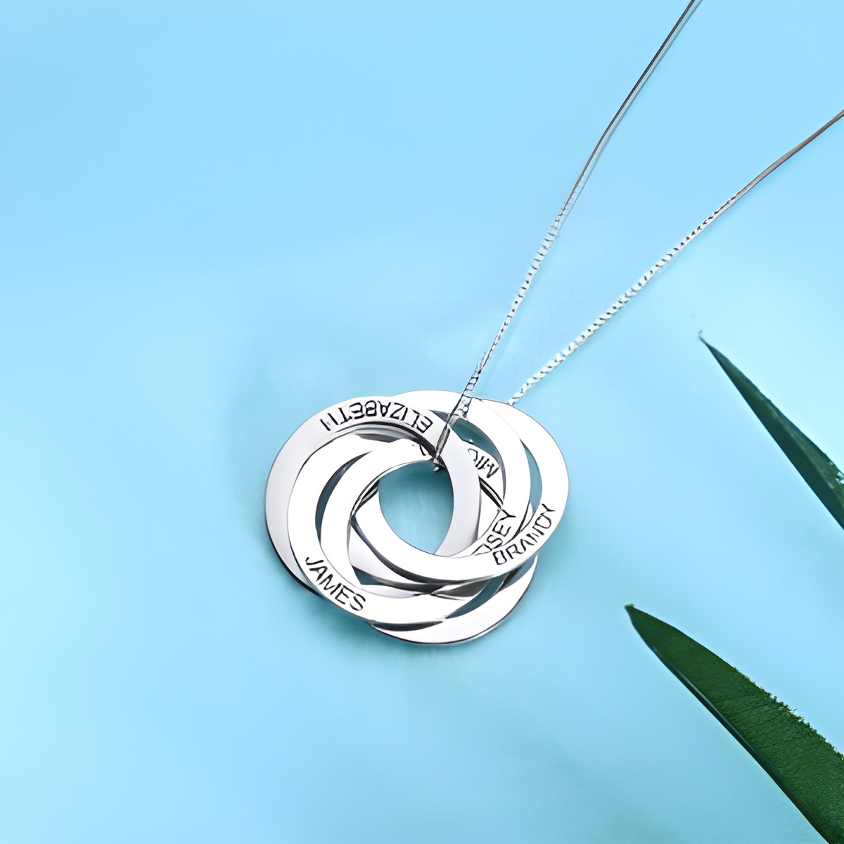 This exquisite Russian Ring Necklace is designed for those who treasure the strength of love and unity. Crafted to symbolize enduring bonds, each delicately engraved ring carries a personal story, making it a meaningful keepsake for yourself or a beloved one. Its timeless elegance complements daily wear, a gentle reminder of the ties that bind us.