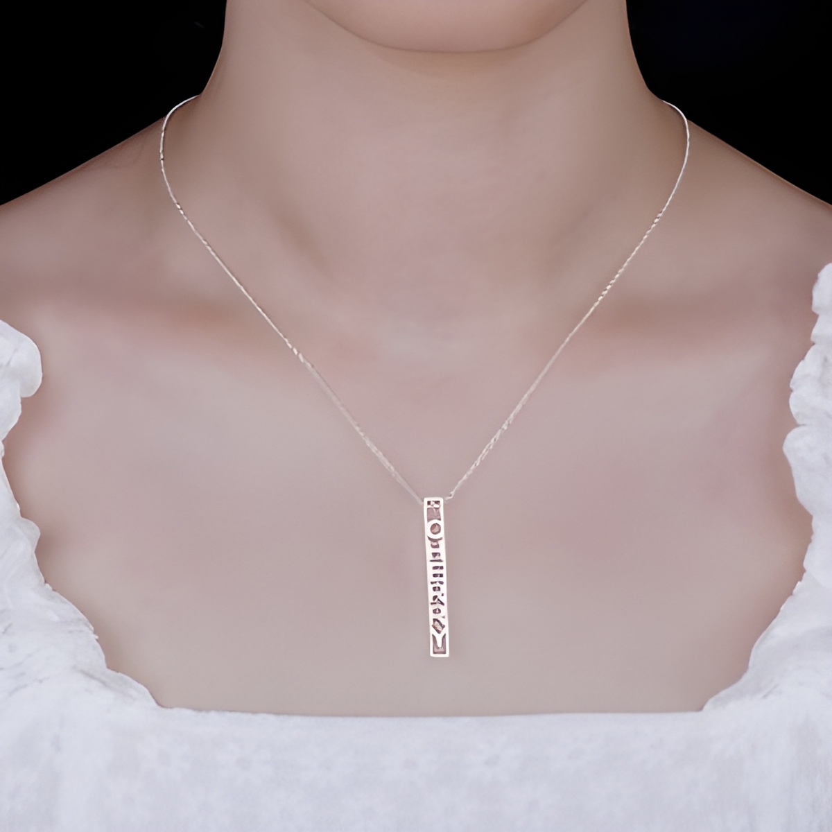 This exquisite sterling silver 3D bar necklace is designed for those who wish to carry a name, word, or message close to their heart. Whether for yourself or a treasured woman in your life, this piece embodies connection, meaning, and timeless beauty.