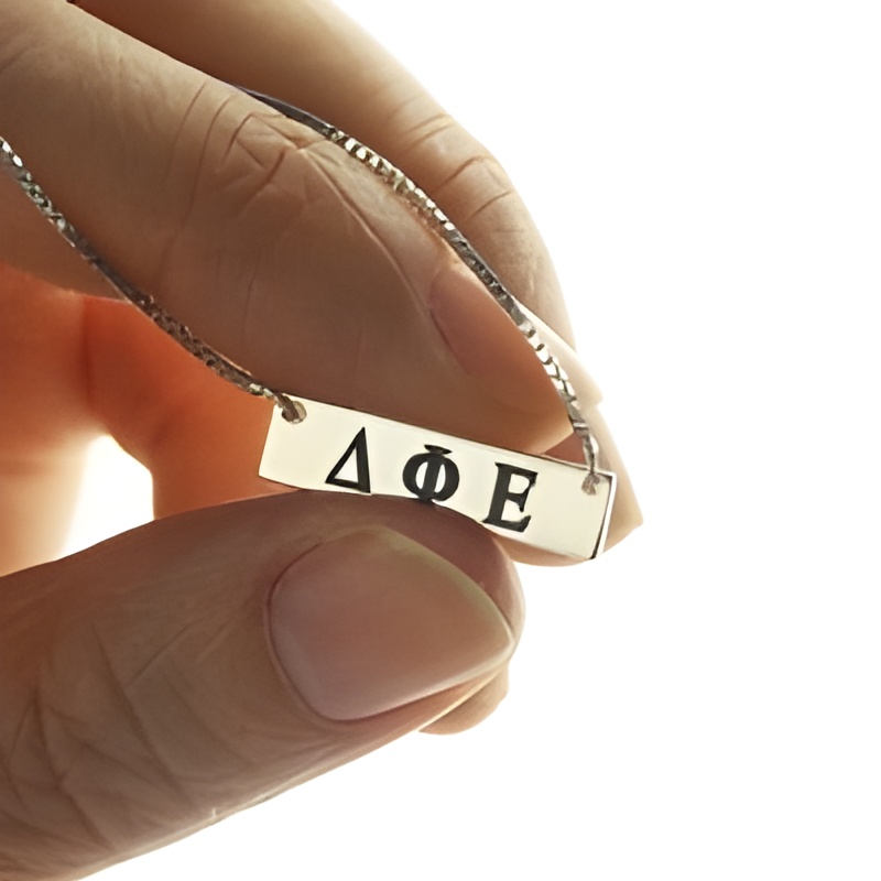Carry Your Sisterhood Close – Engraved Greek Letter Bar Necklace – A Timeless Tribute for Sorority Sisters