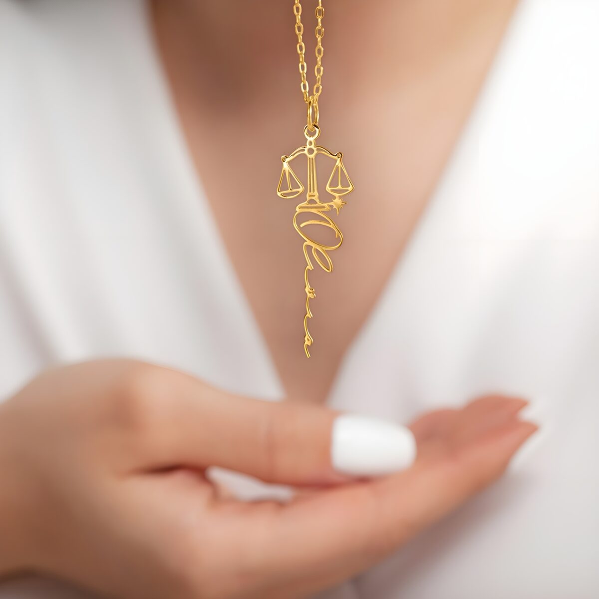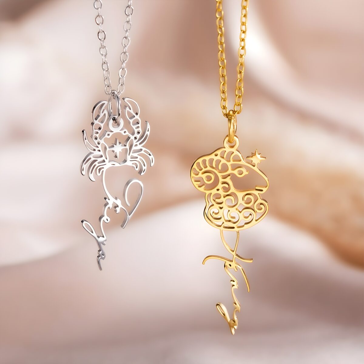 This delicate necklace is a heartfelt expression of identity and love, crafted especially for those who find meaning in the stars. Designed to carry your unique zodiac sign alongside a name of your choosing, it becomes a personal talisman that celebrates individuality and cosmic beauty.