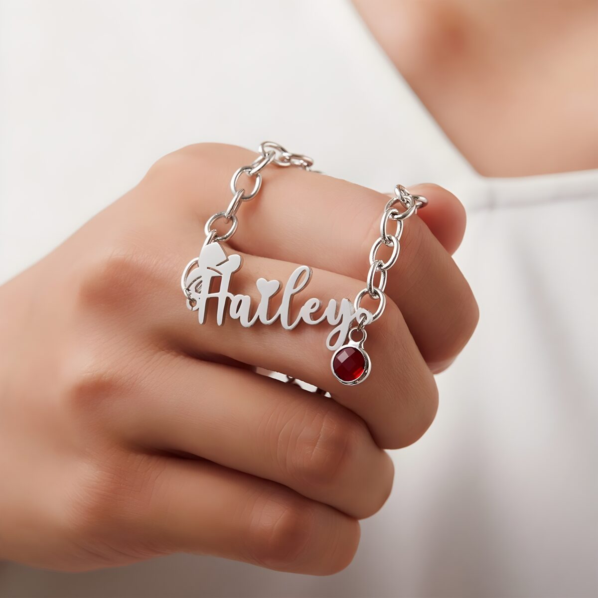 🤠 Celebrate your unique Western style with this custom name cowboy hat bracelet with birthstone, a heartfelt accessory for any cowboy or cowgirl.