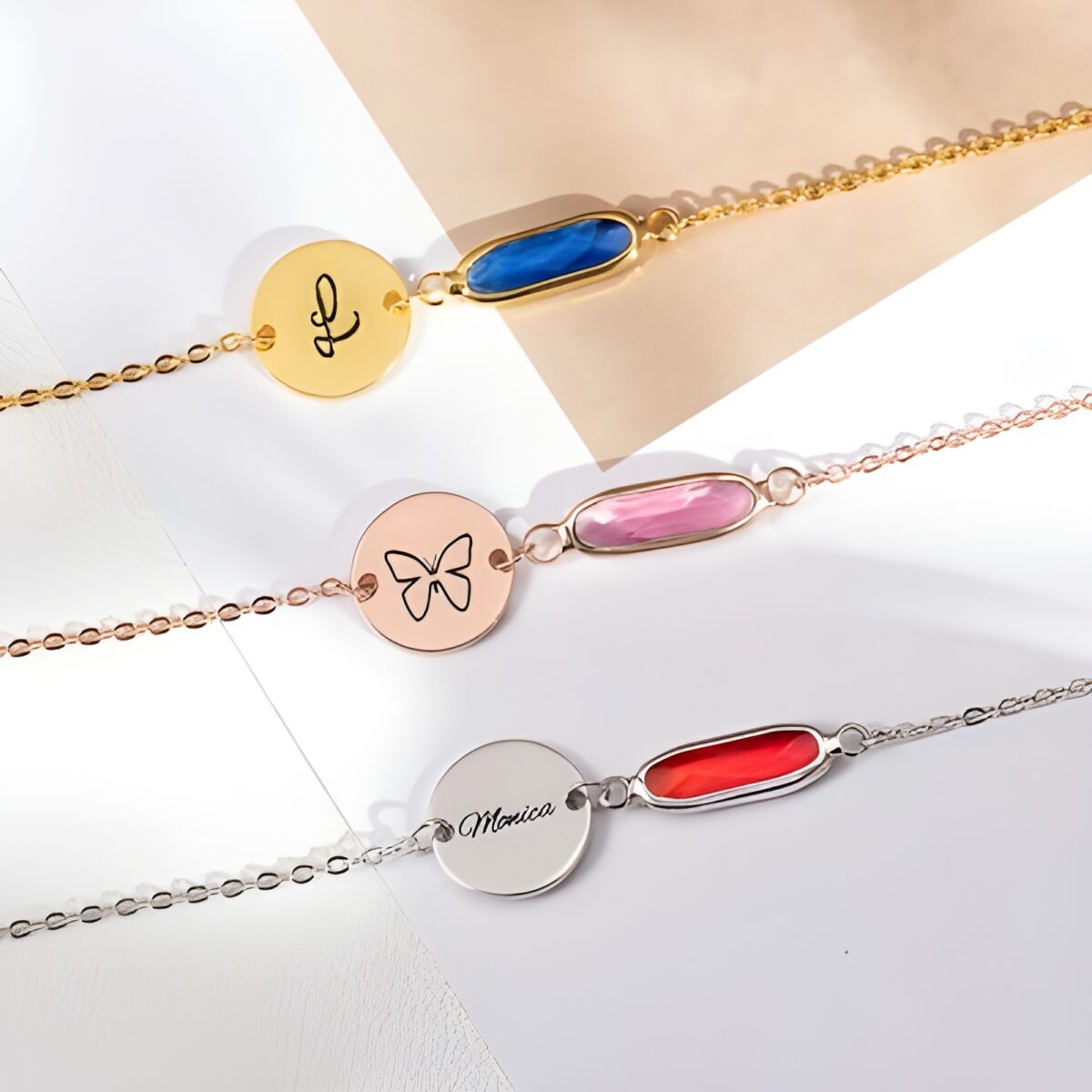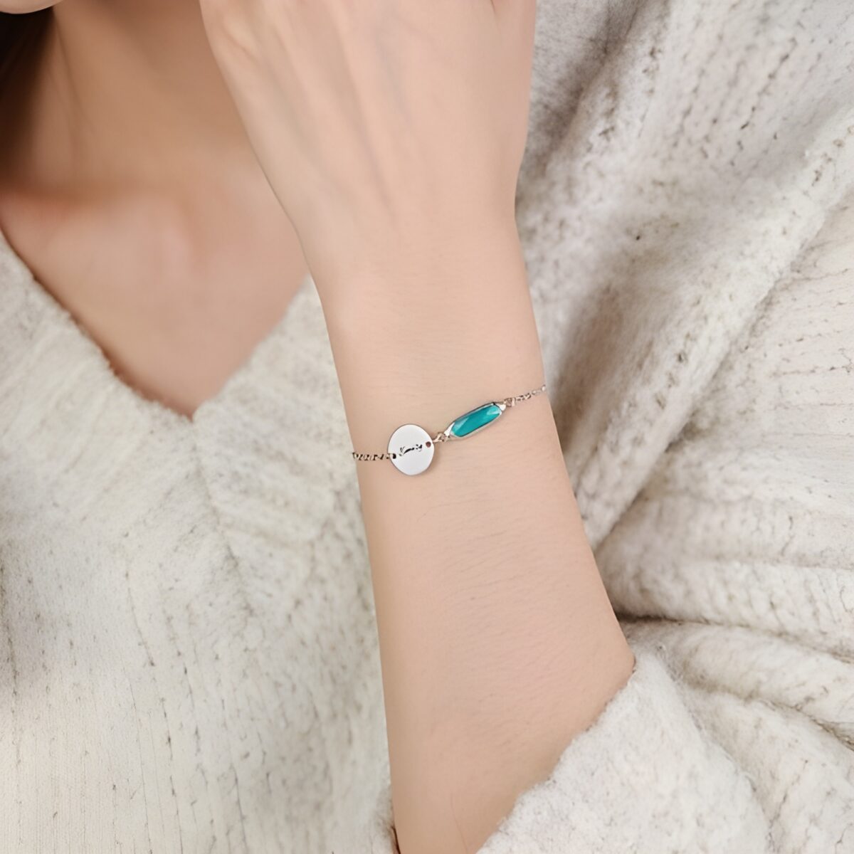 This exquisite bracelet is designed to carry the warmth of your most meaningful relationships. Featuring a delicate sterling silver disc personalized with a name, initial, or special word, it is beautifully complemented by a radiant birthstone that tells a story of identity and affection. A heartfelt symbol for sisters, friends, or anyone dear to your heart, this bracelet transforms memories into timeless elegance.
