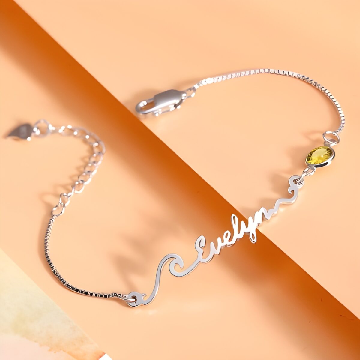 🌊 Carry your name on a graceful wave with this custom name bracelet or anklet, inspired by the ocean’s charm and perfect for daily wear.