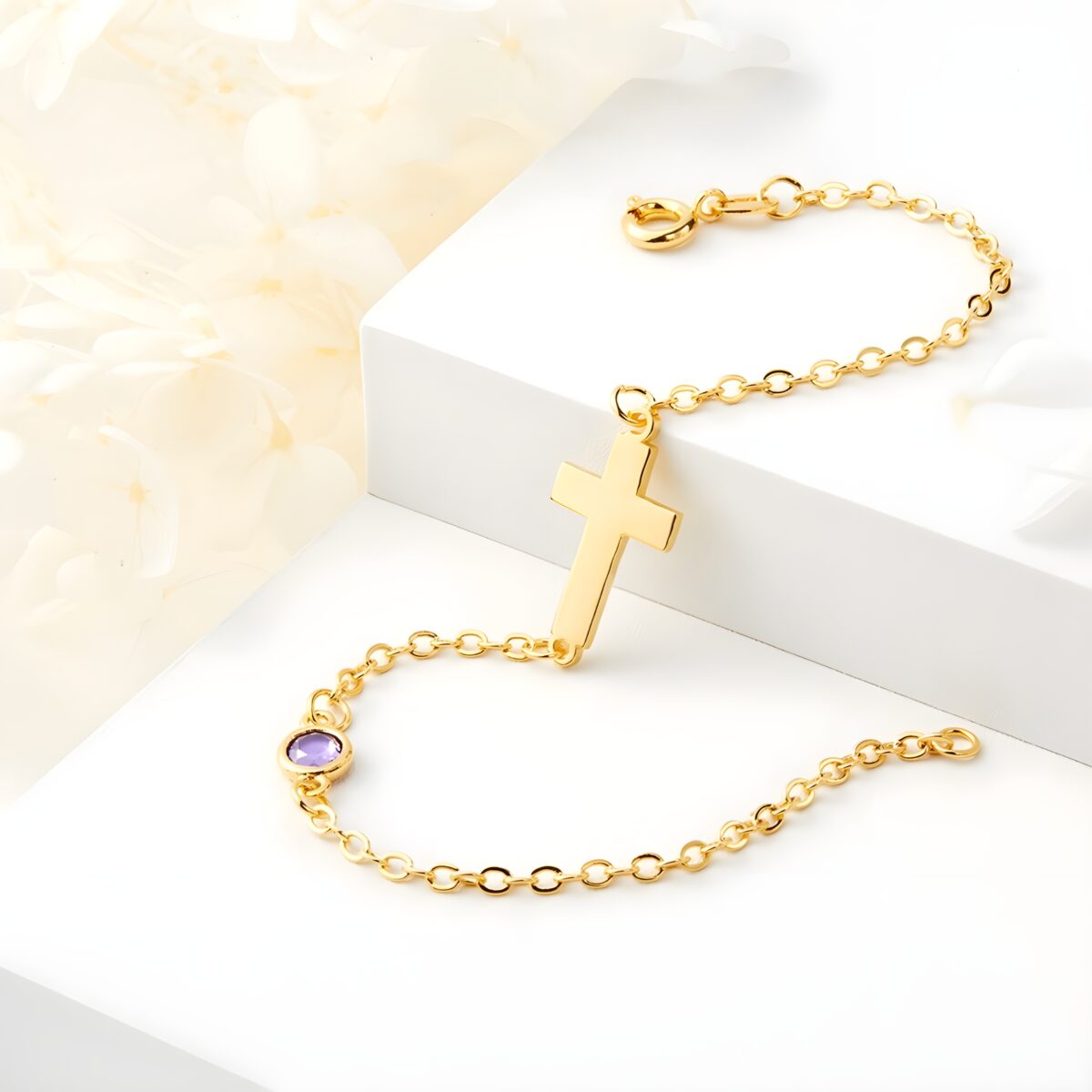 This delicate cross bracelet is more than just jewelry—it is a heartfelt expression of faith and individuality. Designed for women who treasure their spiritual milestones, it carries a meaningful birthstone that makes every moment deeply personal. Whether given to a mother, friend, or family member, it honors sacred occasions like baptism, christening, or first communion with grace and love.