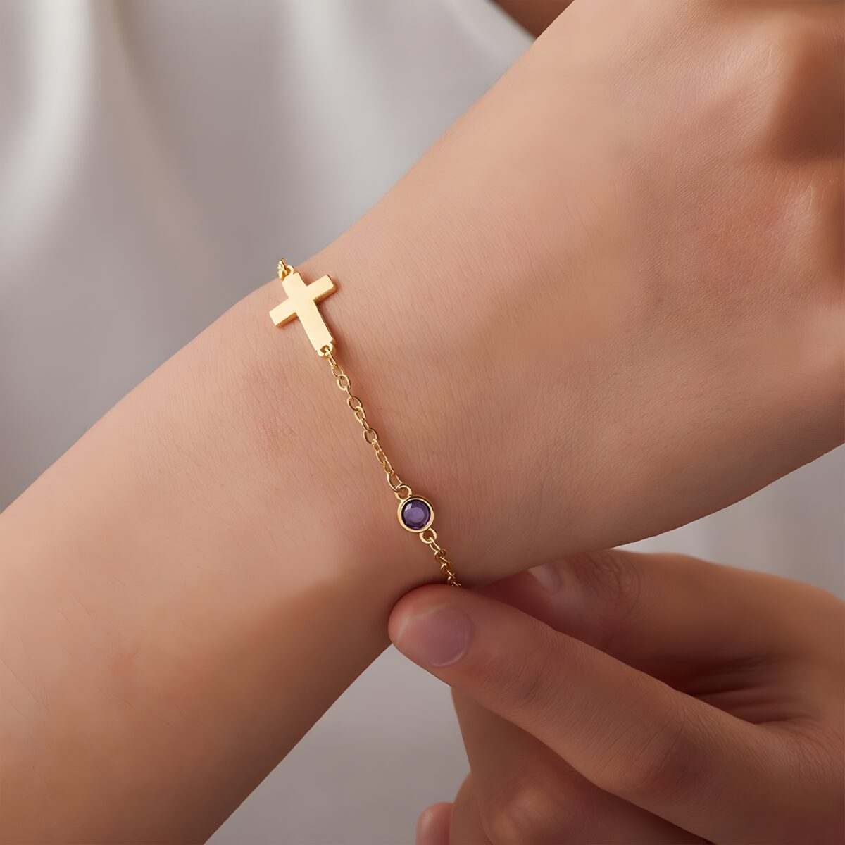 Embrace Faith and Love – Custom Birthstone Cross Bracelet – A Cherished Keepsake for Her Spiritual Journey