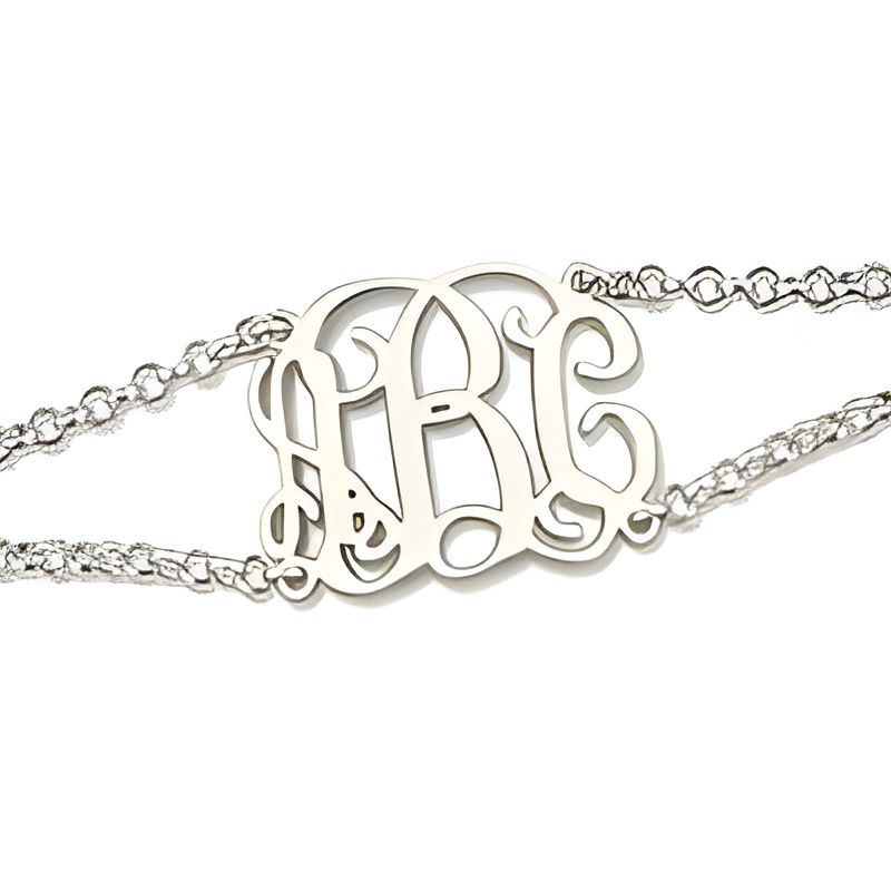 ✨ Adorn your wrist with this elegant double chain monogram bracelet in sterling silver, a perfect symbol of individuality and grace.